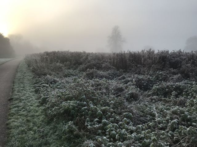Glorious mist and frost, never fails to wake me up and tantalise me out into the land. Michael reading Wilding this morning, all about soil, poignantly at the end of the book, after all that it’s all about soil, our skin, the giant carbon sequestor, the nutrient giver, the source of medicine and food.