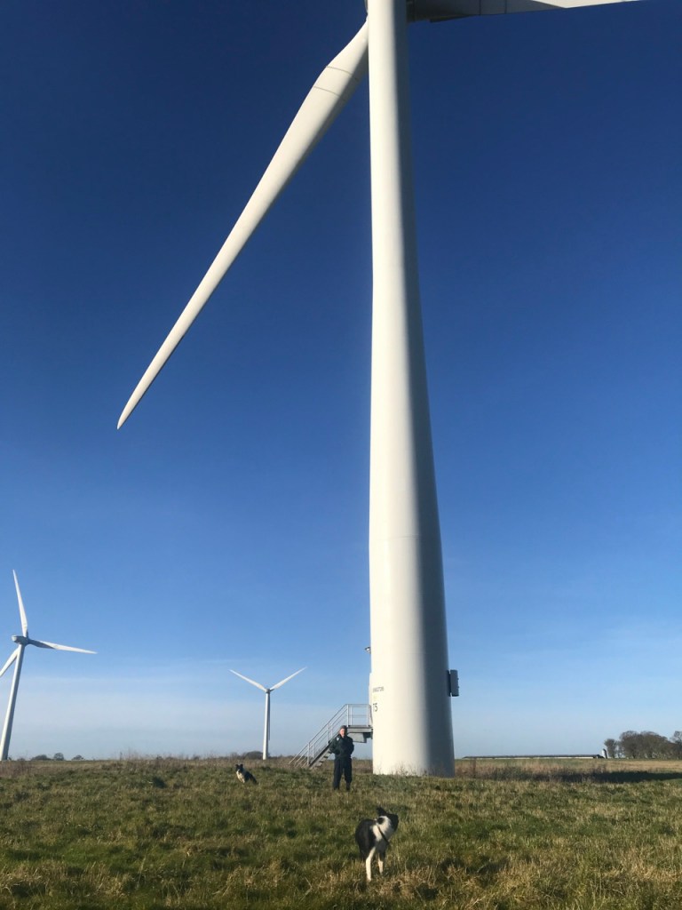 Our first walk was a modest walk to the windmills, Bernhard Matthews 8 great turbines, and back.