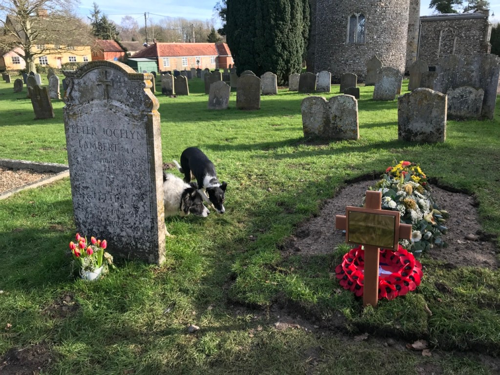 Our second walk was our longest yet, over 12k, from Holton over the Blyth up and down into Wenhaston. A glorious sharp frost day, ground firm to walk on. Over Wenhaston Health to the balancing barn and all the way back. I said, if we cannot make it, Michael will come and get us, but we did it. 4 hours. Under the fan like branches of a cedar of Lebanon we ate a delicious picnic in the church yard of Mells packed by Gill, salmon sandwiches, apple juice and a healthy bar.
