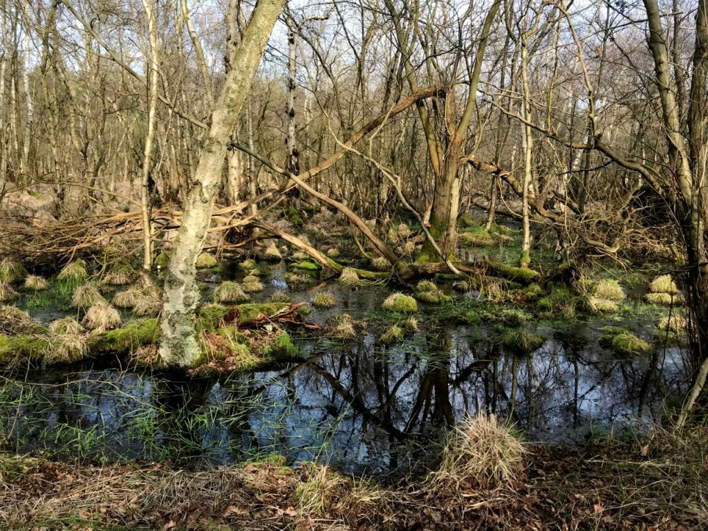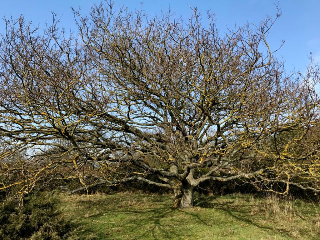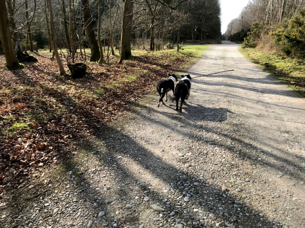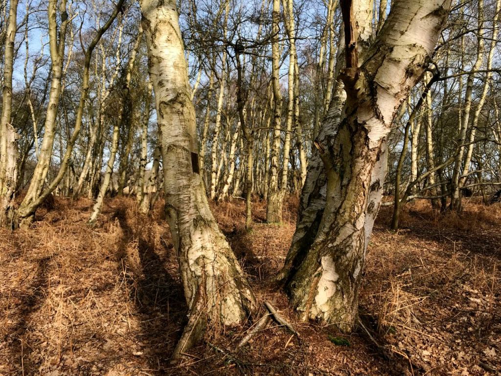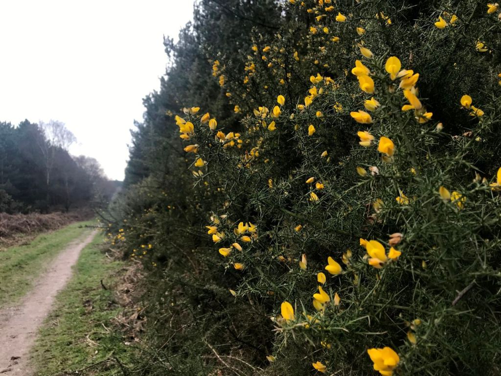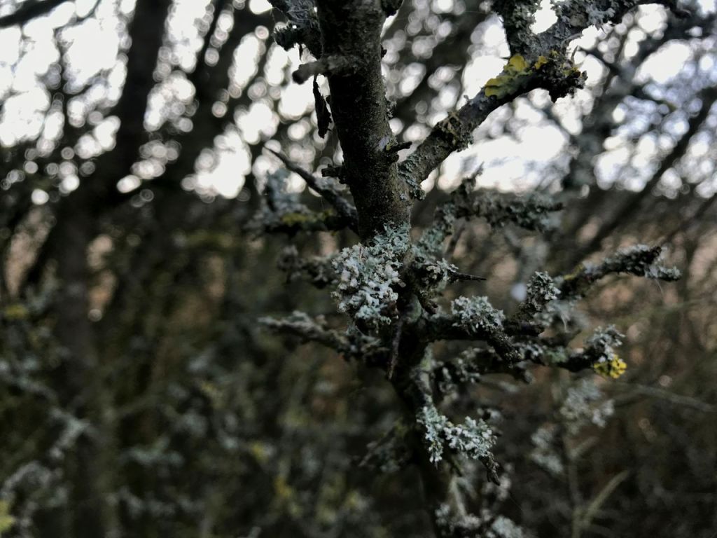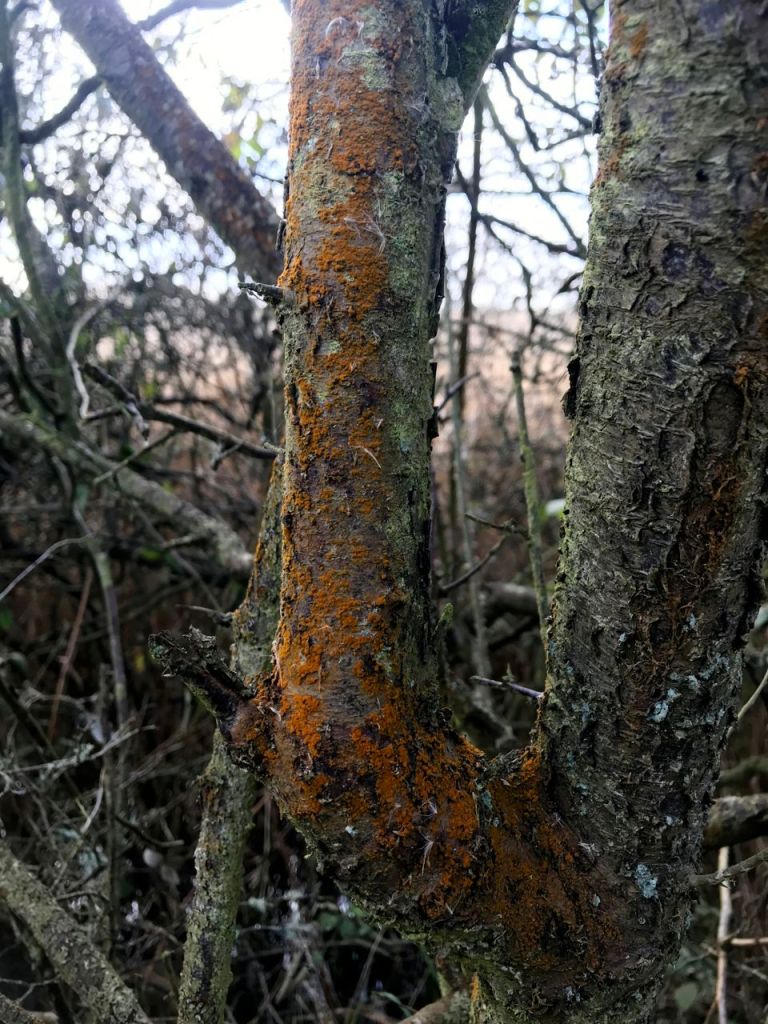 10K On a day unexpectedly hinting at spring – after the cold of the last week (Valentines day, walk postponed, instead lunch of muscles in the cabin, and reading of poetry), it was a pleasure to wear less clothes and walk out. I chose this walk by the sea, thinking sand and less mud – I was mistaken. Setting off from 5 fingers, we walked parallel to the Sandlings walk on board walk, over marshy boggy woodland, reminding us both of Lord of the Rings. That part was easy, it was when we came out to the reed, where exposed the slippery mud began – it was heavy and slow going. Met Katherine on the way, who’d just seen a Bittern – we’d watched 2 circling sparrow hawks. Turned right just before the windmill, on higher and easier ground, we went to say hello to the sea, dogs full of energetic endorphins with their achievements retrieving sticks from a wavy sea, before retracing steps, to find the track to Dunwich forest. We turned into the forest to picnic just before St Helena’s – delicious Gill packed sandwiches, tangerines and cashews. An easy walk back, passed the house I almost bought, the garden done by Peter and Sue, young couples on bicycles, families walking, back to 5 fingers. Eyes opened to lichen, as reading Merlin Sheldrakes Entangled Life.