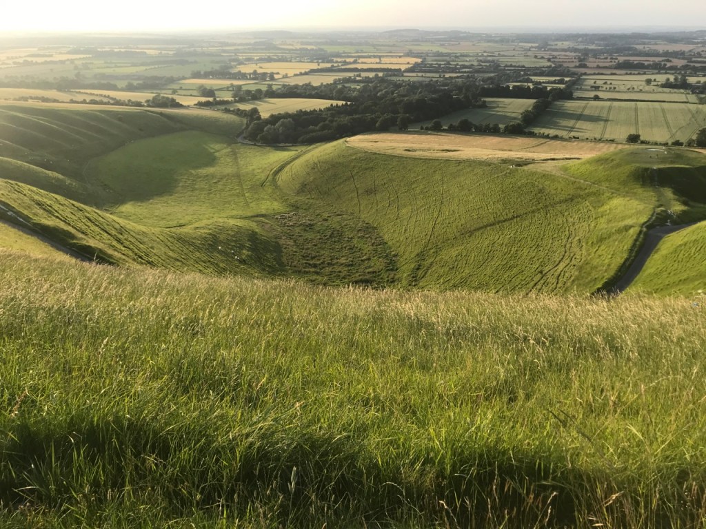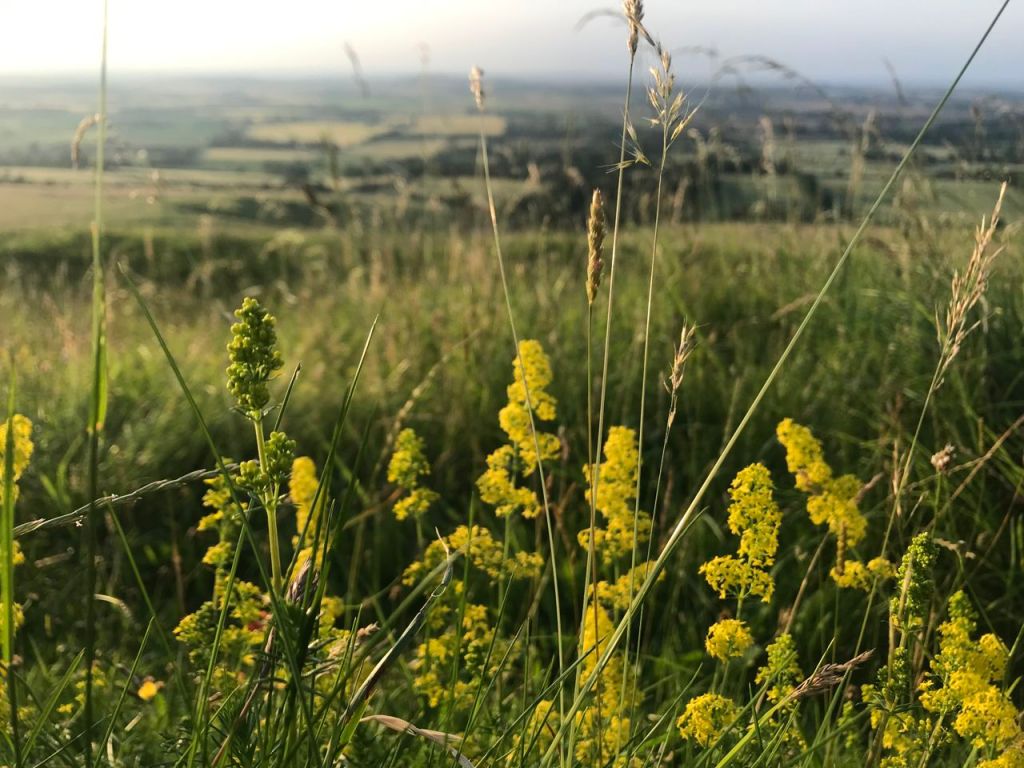 We climbed. I’d forgotten to put the word pub after the White Horse, where we were to dine, so sat nav took us to the white horse hill. At the top a camper with table outside, two glasses of wine on the table, with views over the land. I was envious of their calm enjoyment. We climbed. Hair bells, Scabius, yellow rattle, ladies bedstraw peppered the wild grasses. I asked a man if we could see the white horse, no he said, you need to be down to see it, he thought, although it was his first time here. ‘I think I’ll stay and watch the full moon rise from here, he said. I felt the stricture of my ties that didn’t allow me this freedom.