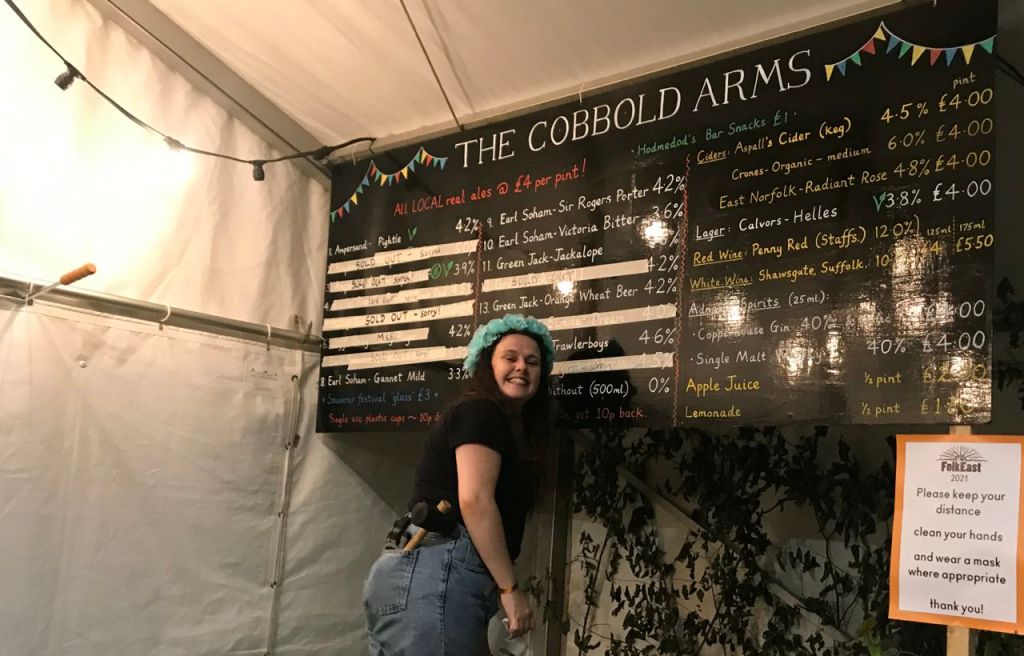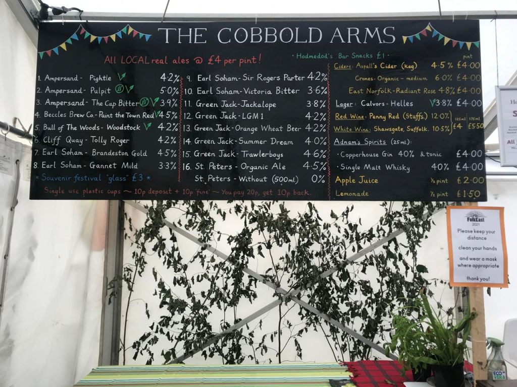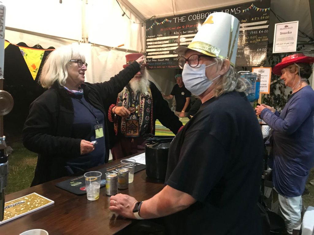 Folk East 2021 – from the empty bar, casks all green for go, to the all sold legend. Bar smaller, we missed space for musicians and loitering drinkers, the dance tent, and the intimacy of the woodland space, but there was time to linger and converse and listen. Thanks to Graham and Nicky brilliantly organised. Knight and Spiers (thanks Gina for correction) and the Young Uns my choice. And I found my wig!