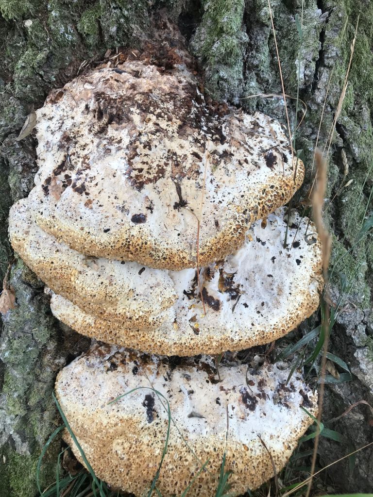 We saw a few oak brackets Pseudoinonotus dryadeus, and I was asked if it was threatning to the tree. I thought not, but now read Oak bracket is parasitic, mainly on species of oak. Spores enter through wounds in the tree’s bark, causing white rot and decay of the trunk, eventually making it prone to toppling.