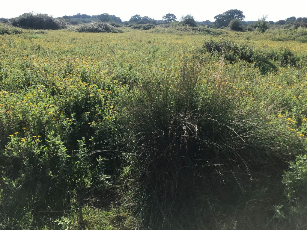 As we stop by our first field she reminds us to imagine this as a field of Barley, as it once was. No targets, no management plan, we saw how the animals shaped the land. The cyclical comings and goings of nature. First nettles and thistles, now fleebane and ragwort. The Sallow enabled by the pigs, who love to borrow and spread it. The beaver project. A hightlight was seeing the spider wasp: