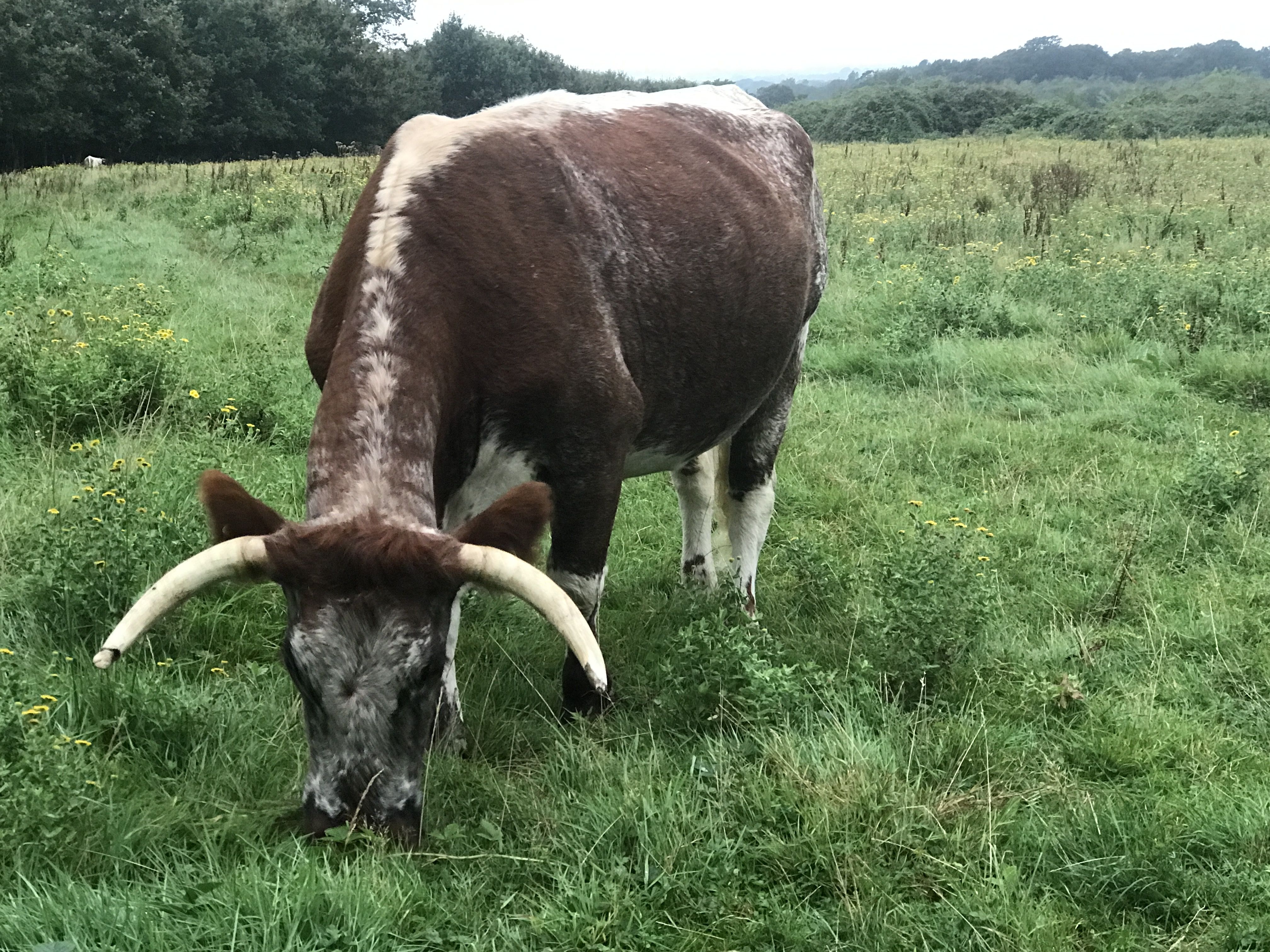 Knepp philosophy is rooted in Rackhams Woodland Pasture and the African Bush. Charlie, I gather from Wilding was bought up in South Africa, and there are strong echo’s of that land here. The Go Down, tin roofs, meandering footpaths made by animals as they move from food source to food source, savanna, and big beasts of animals wondering freely, which we must be aware of as we walk. It was the next day, walking the red walk, coming across a field of long horns grazing by the gate I was aiming for, that I felt that heightened sense of being among large beasts not felt since I walked in Africa.