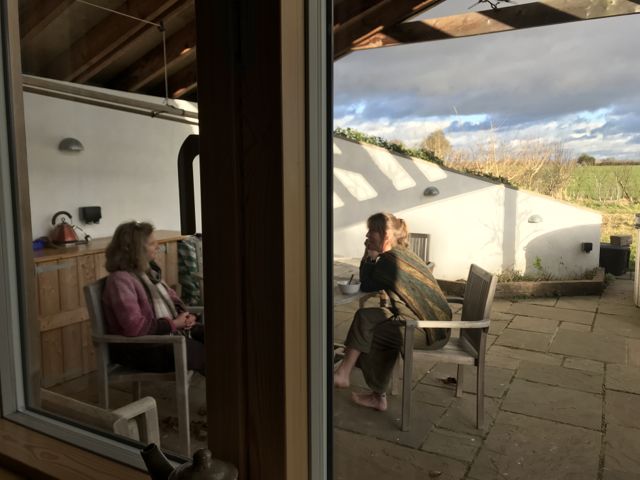 This time, our 2nd gathering, we gathered in a beautiful building in a field in between the Norman church and the Old Rectory, and in between the Evergreen Oaks which were the hotels for hundreds if not thousands of Rooks. We lived in the luxury of underfloor heating, sunshine space, and a bonus of a hot tub.