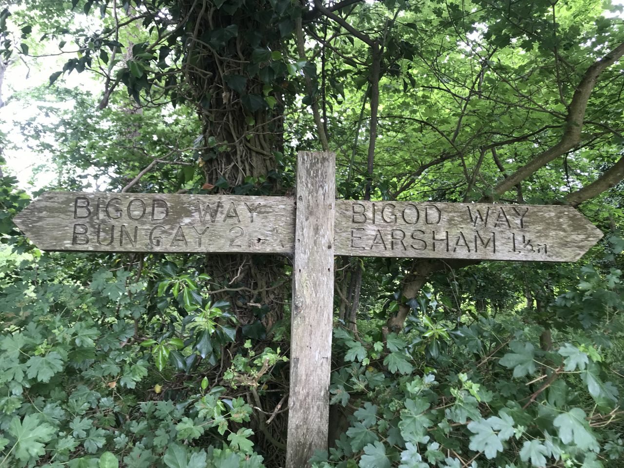 The Way was devised by the Ramblers. From Great Yarmouth the route goes by Breydon Water, along and near the River Waveney, passing around Oulton Broad, Beccles and Bungay, and Harleston and Diss, to its source, and then by the Little Ouse from its source very close by through heathland and marsh to Knettishall Heath in the Suffolk Brecks. Less than a mile onwards west across the heath the coincident start of the Peddars Way and finish of the Icknield Way Path are reached. At Bungay, there is a link into the waymarked Bigod Way (10 miles) which is a circular route around the town, the site of Bigod’s Castle