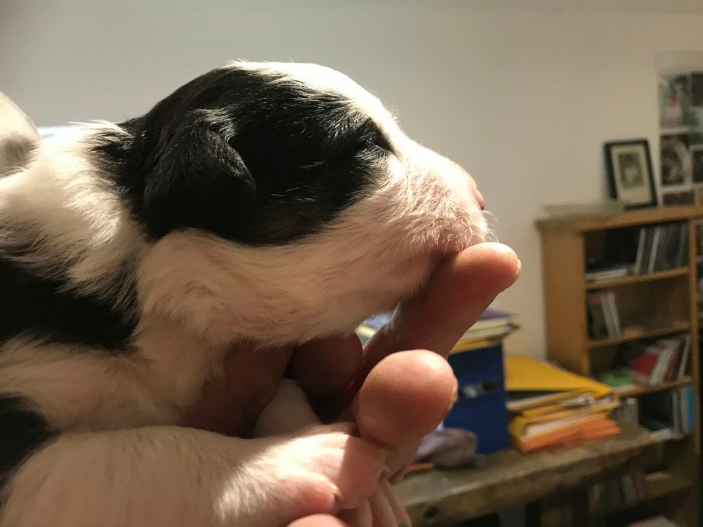 Bobji Is the daughter of BRYN, (Sue Little) and ROSIE (ANN LAWS), born December 2016. Rosie, short haired, worked on the farm with cows, Bryn, long haired, is a trained sheep dog. Both from Norfolk.
