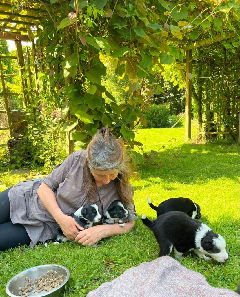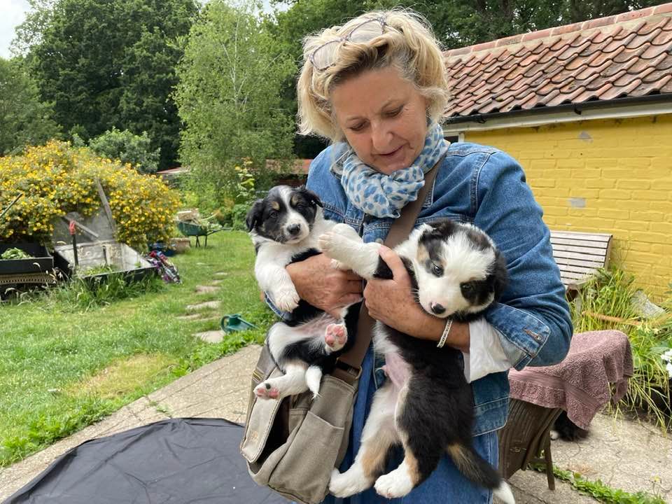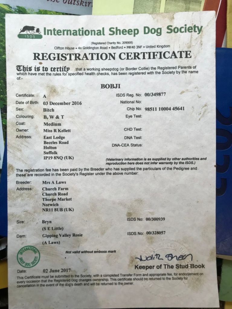 February 2022, aged 4, she first met Jake, a hard working and very good natured border collie, owned by Lucy, a Shepherdess. Jakes day job is to round 2,000 sheep on the Heavingham estate. Bobji and Jake got on immediately, liked each other and eventually mated.