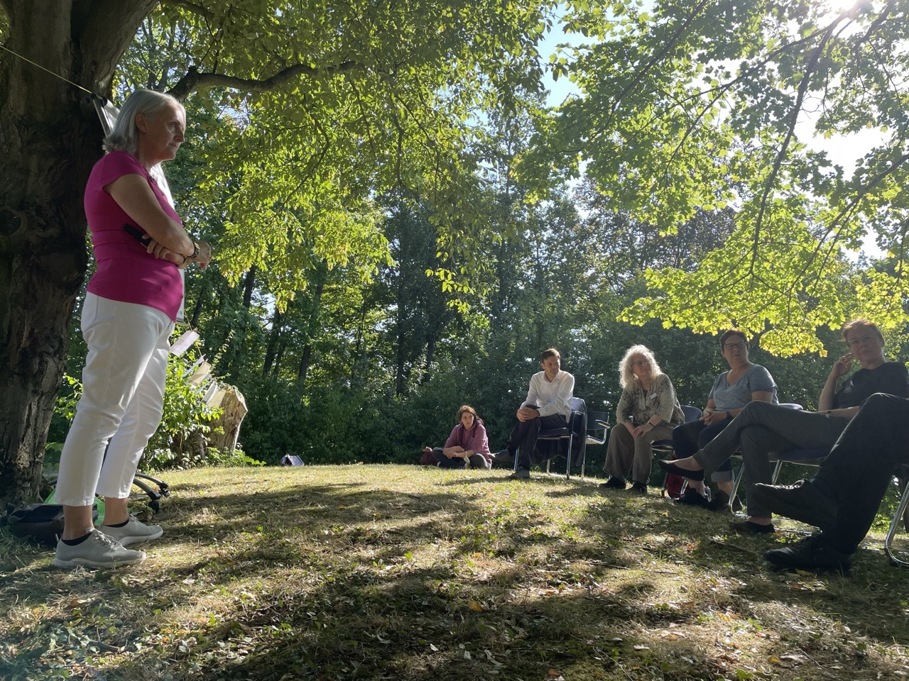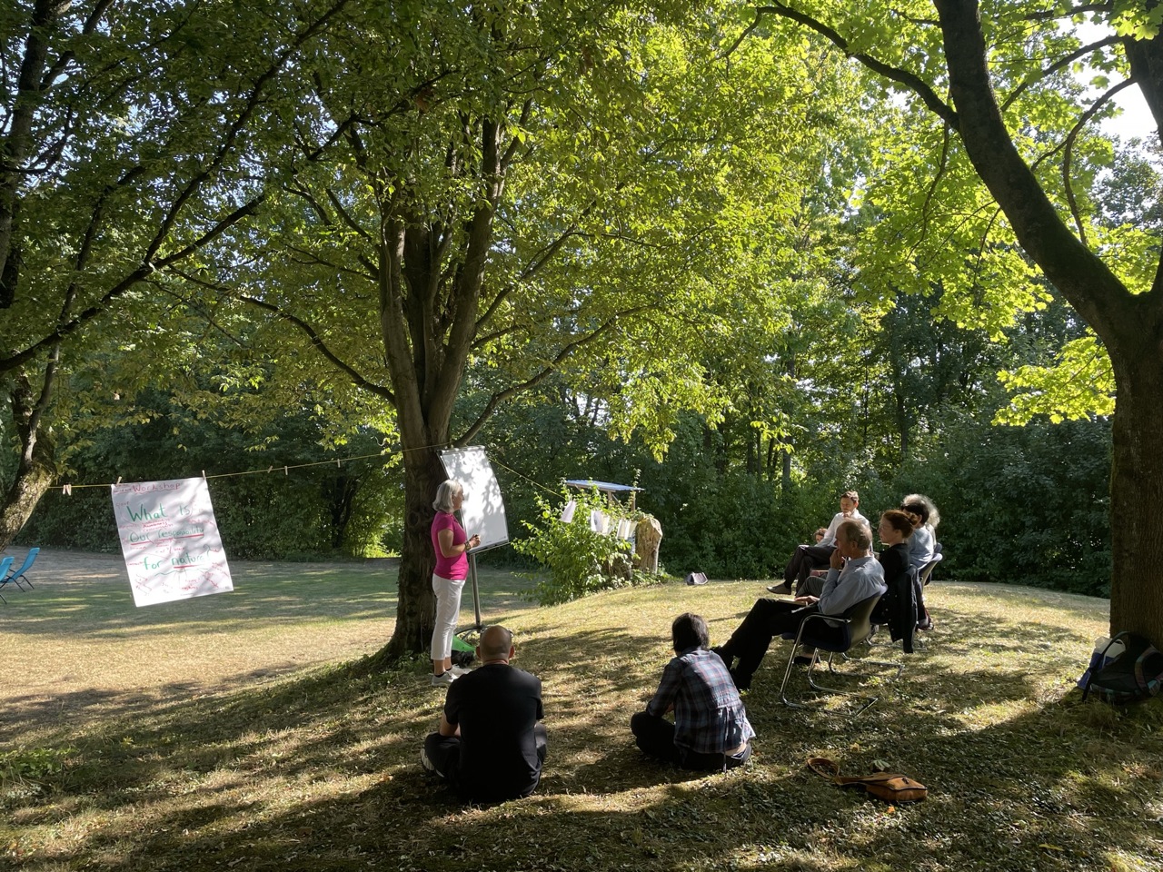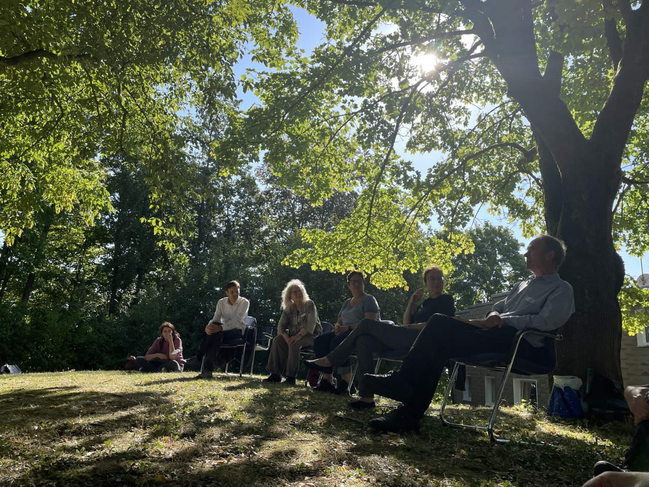 Rachel began with rooting us in the space, here on the earth, in Springe, August 2022, eyes closed, aware of the sounds passing as visitors through our senses. Using the talking stick all were invited to introduce themselves name, place, and connection to Socratic Dialogue. In both workshops we found with us a wide range of those who had being doing SD for 20 years or more and those the first time with us.