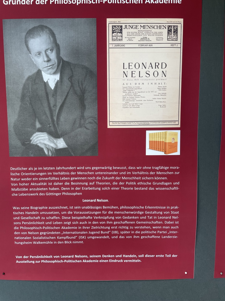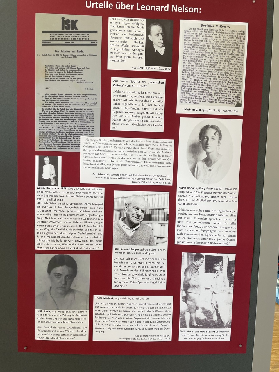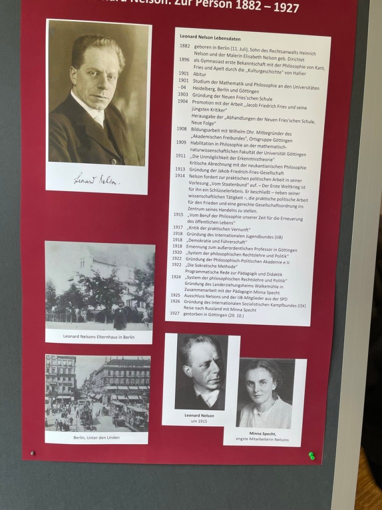 The conference was made up of Lectures (mainly in German) about the life and work of Nelson and followers such as Grete Hermann and Minna Spechts, as well as workshops – two of which were in English. Dieter had organised and designed a magnificent display of the history and development, some in English.