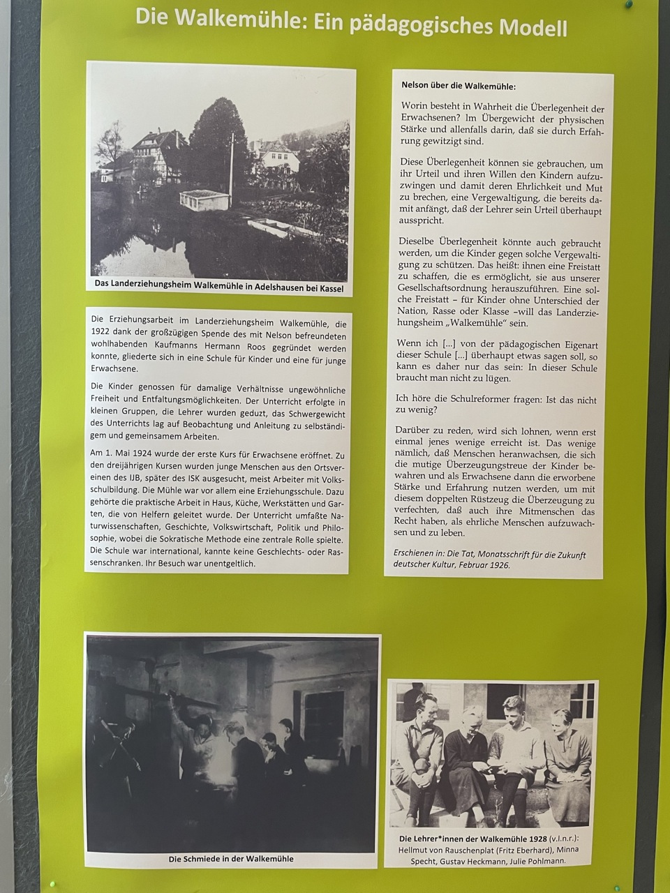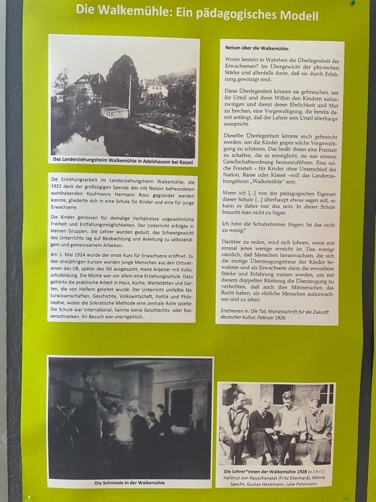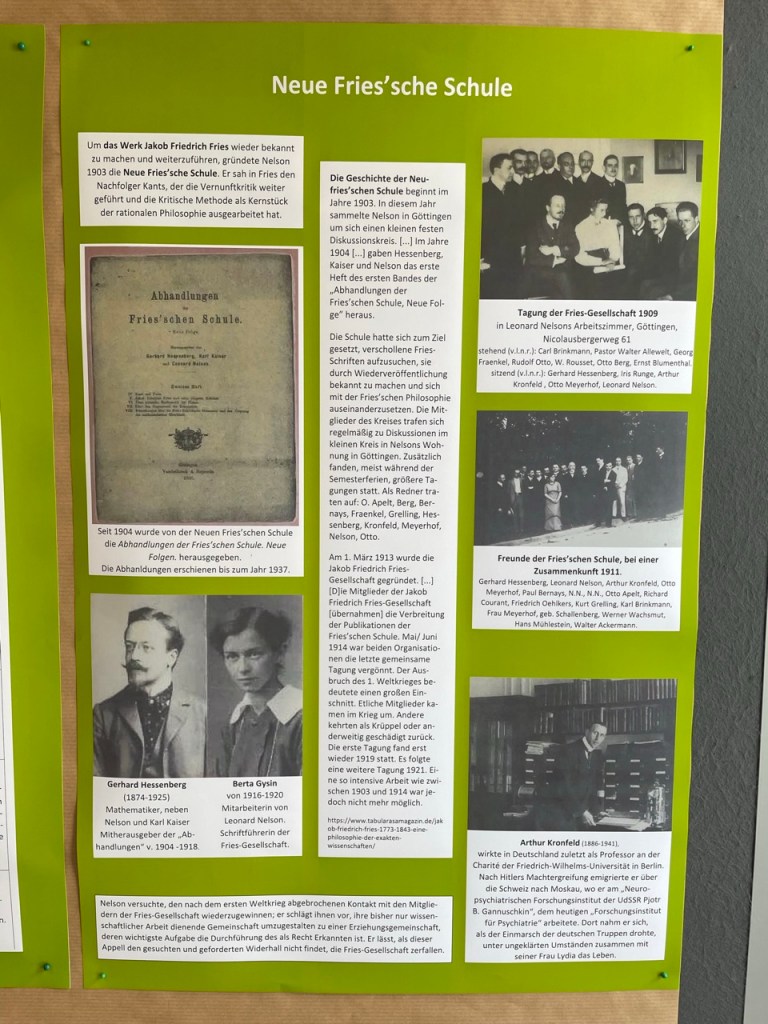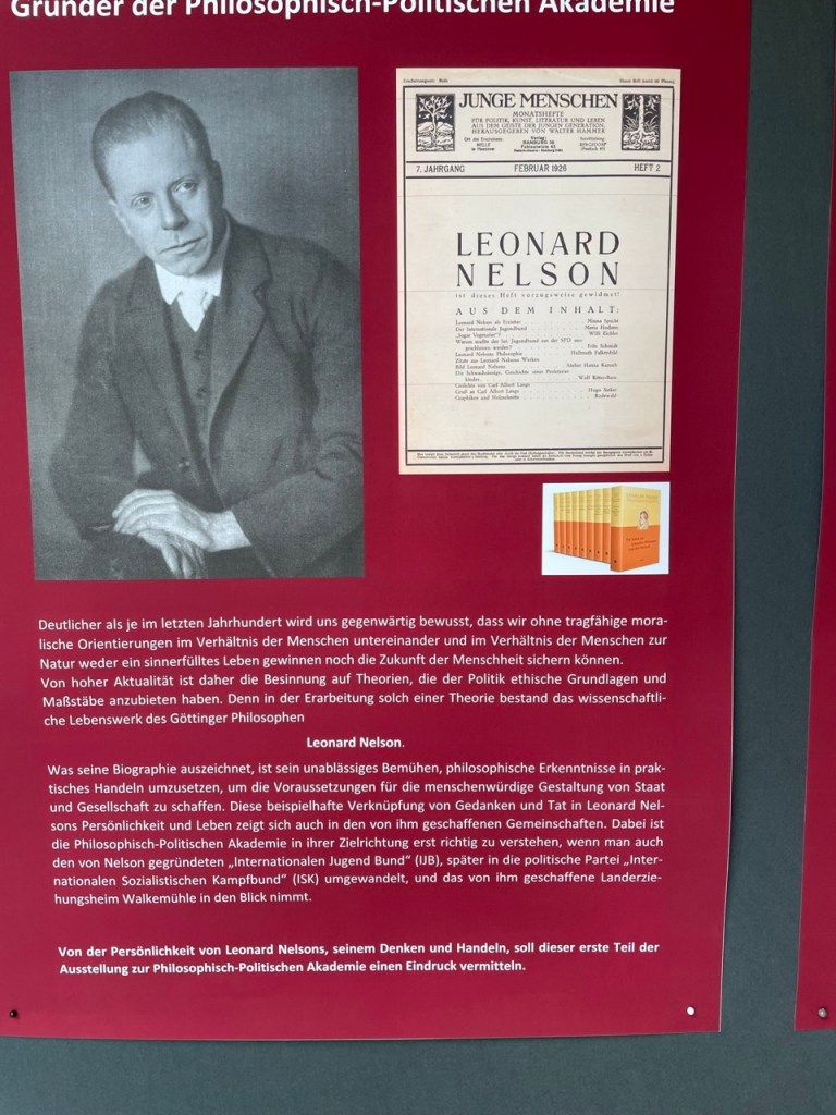 The conference was made up of Lectures (mainly in German) about the life and work of Nelson and followers such as Grete Hermann and Minna Spechts, as well as workshops – two of which were in English. Dieter had organised and designed a magnificent display of the history and development, some in English.