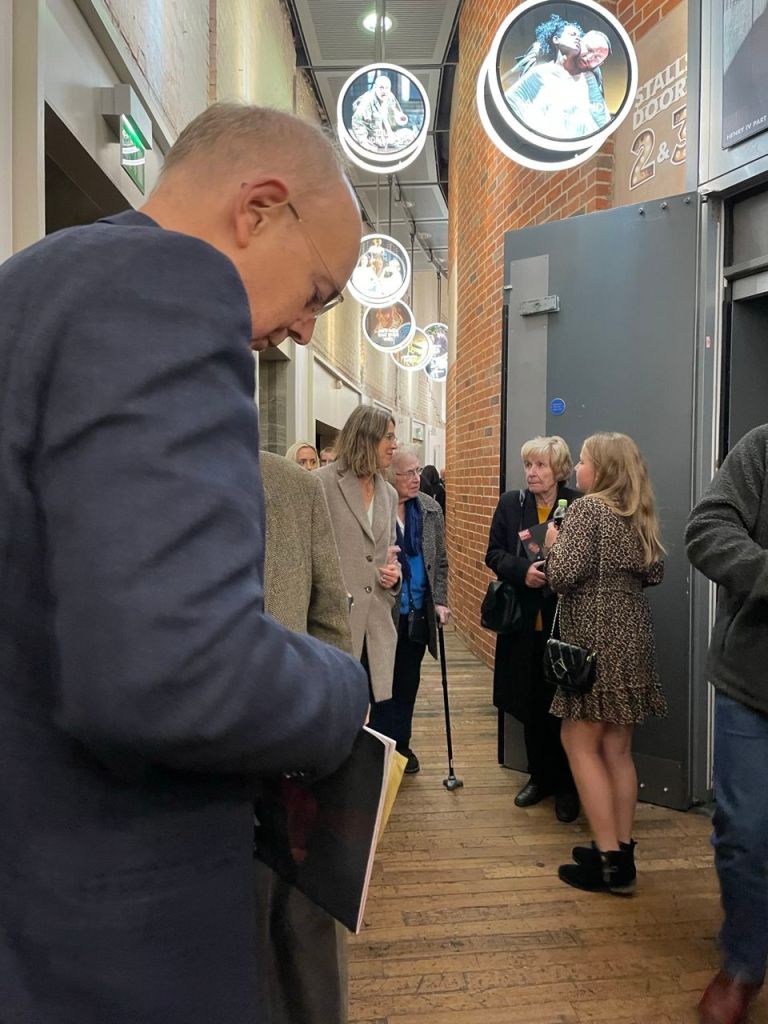 The production was full of sheer energy and joy, actors running in from the sides through the audience. Dickens the narrator, doors wheeled on to form rooms. The turn of parsimonious Scrouge, (you will relate to this character, Michael observed of me earlier as I said I wanted nothing to do with Christmas or family during this up coming time), by the visitations of Christmas Past, Present and Future. Christmas Present, Sunetra Sarker, speaking with a Liverpudlian accent, with modern interjections, was my favorite. Having Dickens as narrator was ingenious explaining how this was a more effective way of hammering home the hard-to-swallow bitter pill of time-honoured inequality and suffering. Jest towards Boris Johnson. Adrian Edmondson as Scrouge was brilliant, a perfect curmudgeon, capitalist, utilitarian.