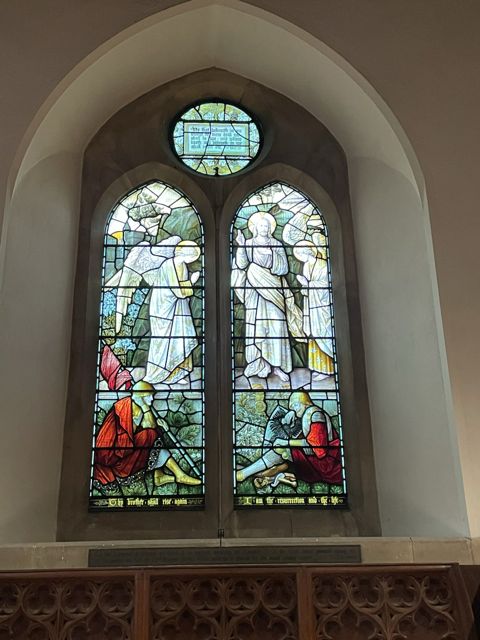 Morning walk to All Saints Church, Greywood, which turned out to be an Arts and Crafts church built 1900, with a stain glass window I admired, and with intriguing graves, many army. One a Polish noblewoman and WW2 organiser, of Zofia Moss.