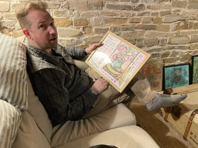 As we listened to Mahler’s first symphony, we put up the 4 paintings of Charlie’s and adjusted the 13 Yaks to hang higher. And remarked about the mountain of putting the sofa bed back, a mountain we had successfully climbed.
