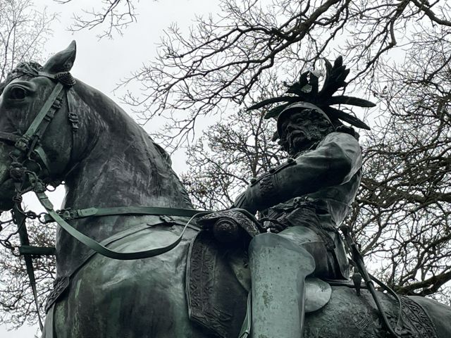 Evening walk through the estate, to the statue of Lord Straighnain. Evening dinner of left overs.