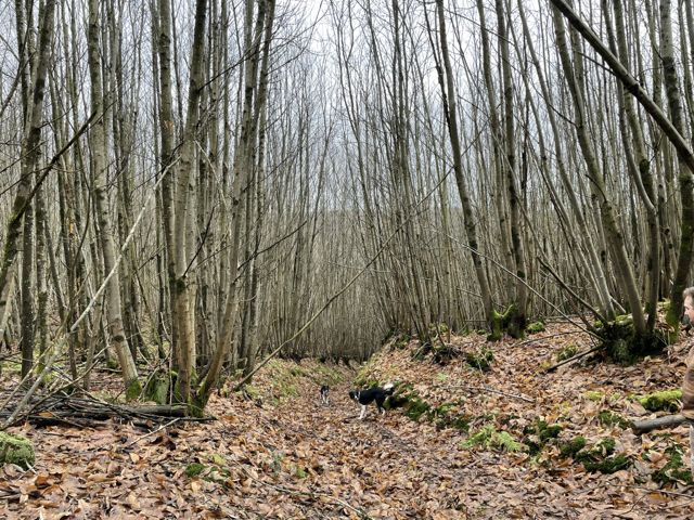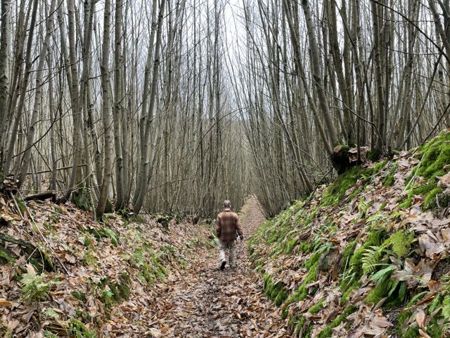 Here’s a photo Charlie took of me admiring the Sweet Chestnut coppice