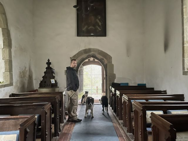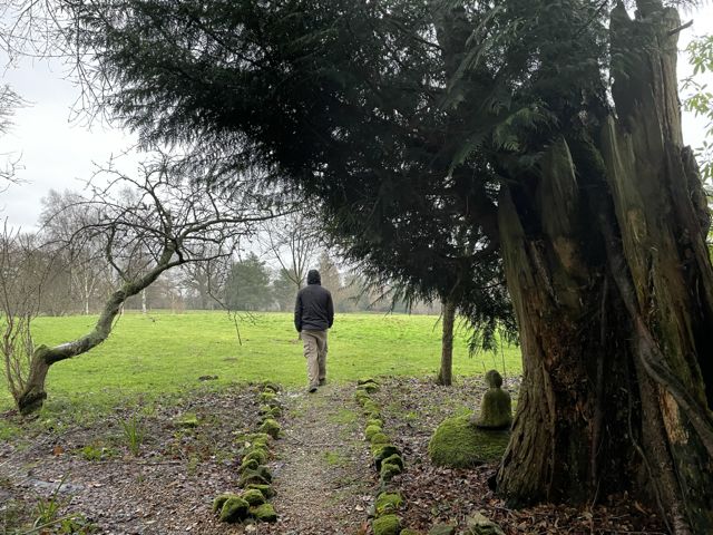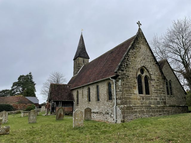 The weather forcast for Saturday was pants, but we did not mind as we drove to Charlie’s monastery, CHITHURST Buddhist Monastery, with links to my Buddhist life. Therevadan in origin it was founded by Ajahn Sumedho, one of Christopher’s teachers, so I relayed the story of how I came to meet Christopher , locked down in the Burmease Vihar during Holi, and seeing his name on a notice board. Such care, such tending. The garden, the cloister, the meditation room, so loved and cared for by hundreds of hands, giving time and energy. We sat for 20 minutes in beautiful silence. Outside, we wondered around the small chapel near by the actresses home, (her name and Charlie’s story forgotten, but Tori reminded me, Sarah Miles ) a stunning elizabethan? mannor house, rain preventing a longer walk.