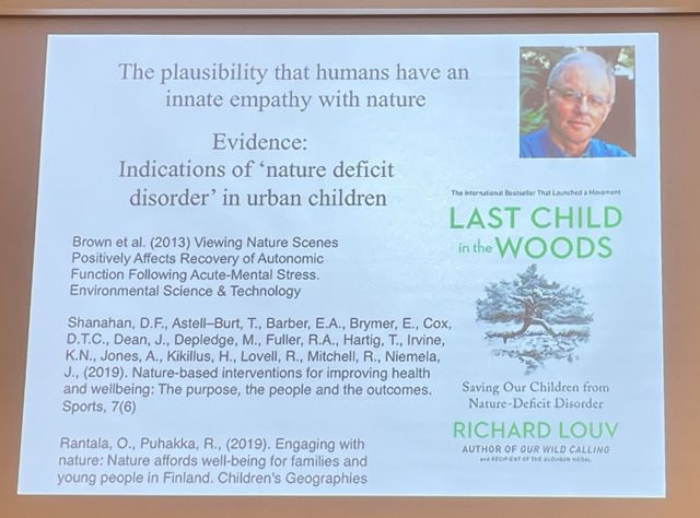 One slide recommended The Last Child in the Woods – ordered. Evidence that humans have innate empathy with nature. Octopus.