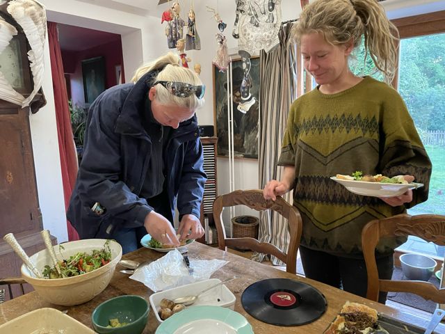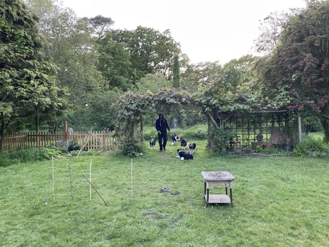 I found it difficult to talk of anything other than our dogs, so at one moment, called our gathering to reflect on the pups had faired in our lives. The drama of their birth recalled – Bobji beginning her labour in the car to Norwich to get Michael’s injection for US, how back home nothing came out, so called Lucy who said, you take the top end I’ll do the bottom. ‘It was easy really, you just put your finger in and jiggle it around a bit to ease the passage out – the dead pup was caught in the birth canal’. I began with the realisation in Time in our life, that my childhood ambition of having 6 children, and marrying a farmer, had in fact materialised in a very different way to that imagined: Bobji had given birth to 6 pups – and I the midwife (with Lucy’s help) and I had become a farmer, with the field. I would not have missed the experience for the world. It has not been easy, the relationship with Brow not easy – but the love grows.
