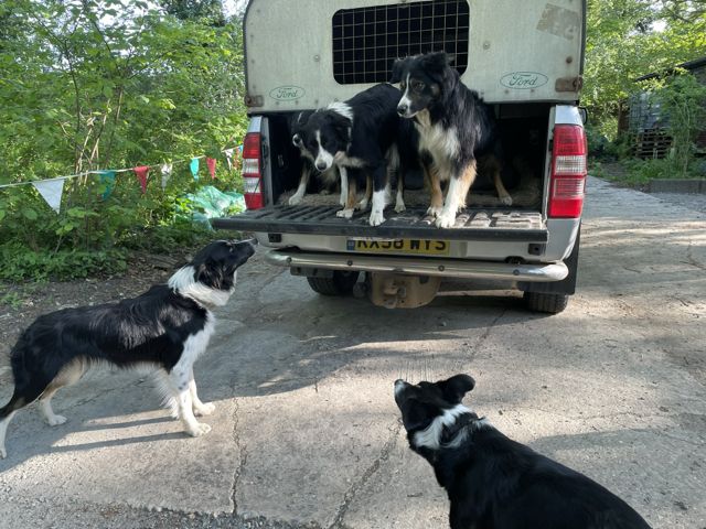 We were later than expected (Lucy on a sheep/lamb duty), when the full tribe were gathered for a short while, Kali surprisingly silent, Jake marking territory, Jazz trying hard to shake off Mossip and the boys who were keen on her channel No 5 scent of just off heat. Jet unusually shy, not among her usual sheep.
