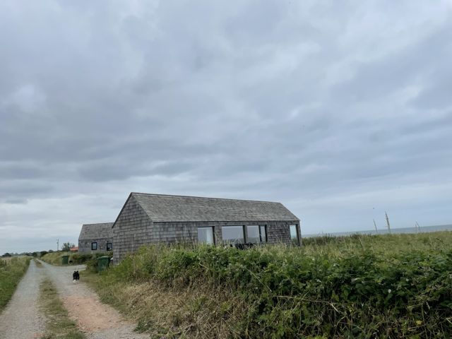 We walked down an old track lined with gnarled blackthorn, then encouraged by a dog walker, turned left at the sea walking beside a house for sale (£450,000) with an outlook of bricks pilled up of a previous home now lost out at sea. We found the two holiday homes, beautifully clad in cedar with shingle roof, wheels discrete underneath, with views out to sea. Further down a track, we met Phil, the landowner family, who without heavy handedness, explained that if it does not say footpath, it does not mean right of way (does your home say footpath? he asked). He liked the dogs, and would one day get a border collie. ‘Don’t buy in Southwold!’, he advised, the coast here looses 5 meters a year. ‘War time here was a runway going a kilometer out to sea’. His passion was flying, he explained. The family farm that used to be 350 acres was now 100 acres of working land. One side they had planted grass and herbs for variety, the other for birds, and birds they came.