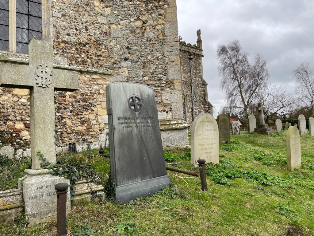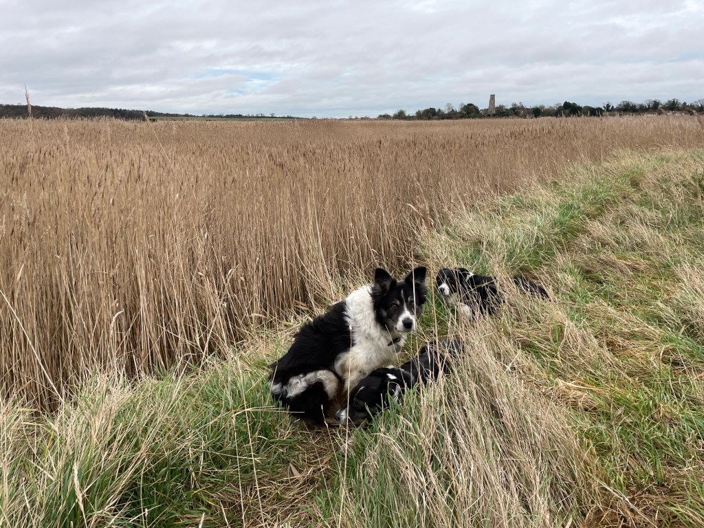 Reaching the Cathedral in the Marshes, we meandered the graveyard, names of people, short biogs, images. The Blois family at one end. Will I ever get together an index of graveyards I have visited in my life? A good COVID project! Wondered how I didn’t know about a tour of church every Thursday. We were the first customers at the White Hart, dogs admired from afar as we drank an applely cider before turning back.