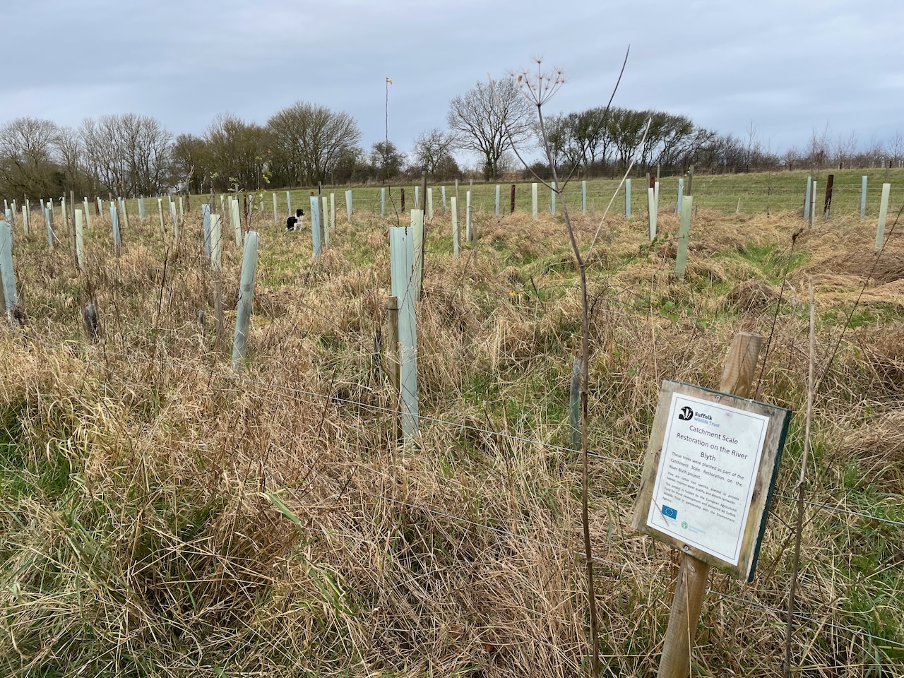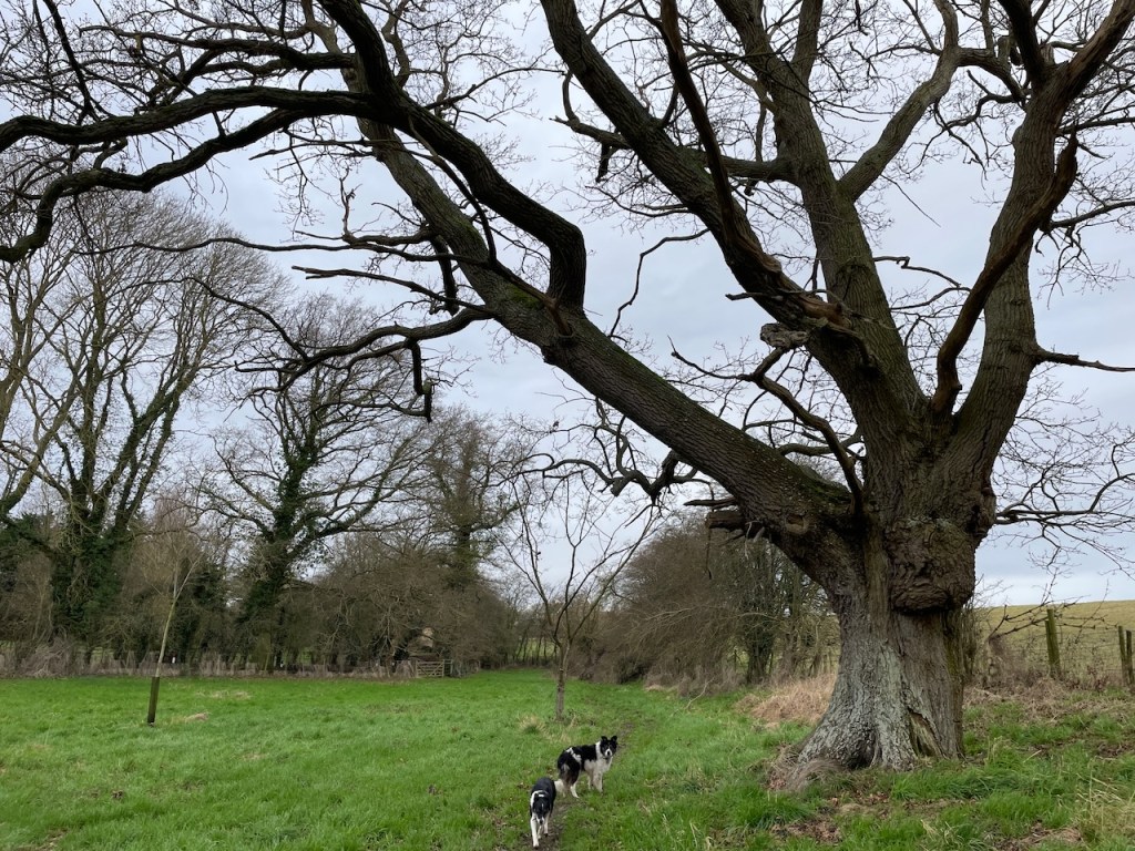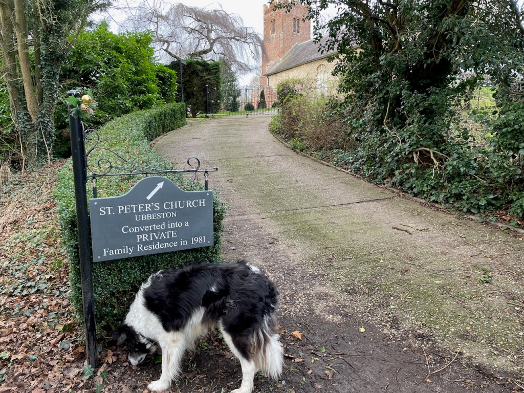Mistook the boundary between East Suffolk and Mid Suffolk as a potential footpath (!), passed a graveyard for old cars and vans – an unusual pleasure after so much done up with precision and careful manicure. Left the Blyth to head north up the Low Road, until a footpath east, crossing back into East Suffolk, and walking high (!) above the Blyth valley. A few encounters with sheep – Brow thankfully stop down obeyed, dogs on leads champing pulling, wanting to engage.