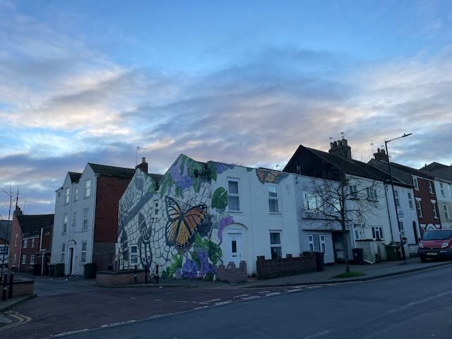 Walked up the high street, over hearing voices from other lands (novel coming from Halesworth).