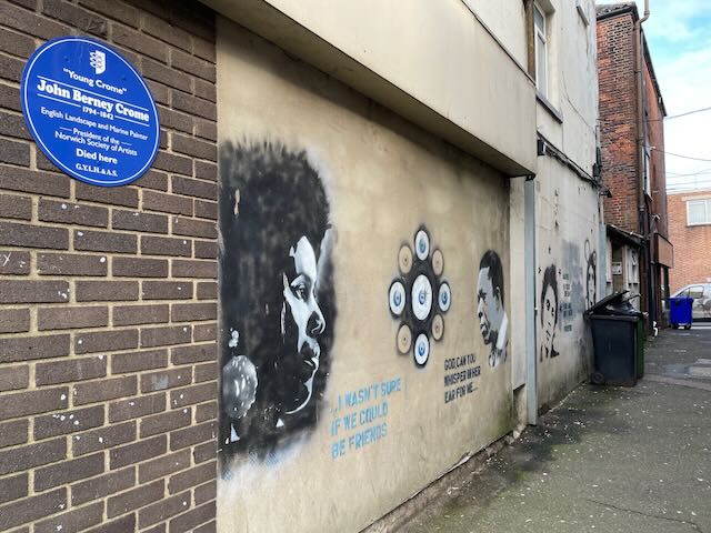 Walked up the high street, over hearing voices from other lands (novel coming from Halesworth).
