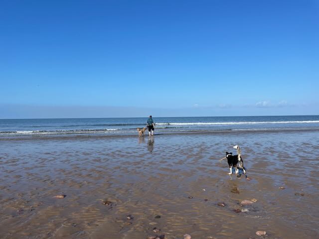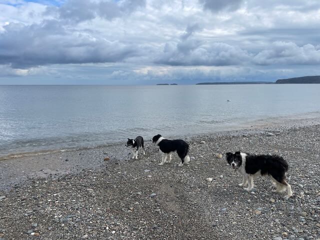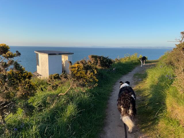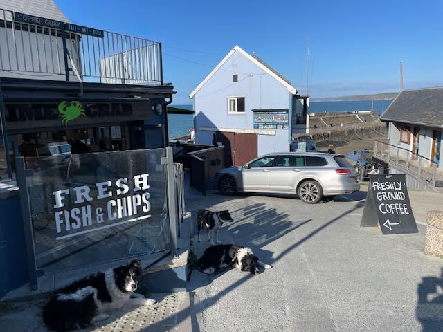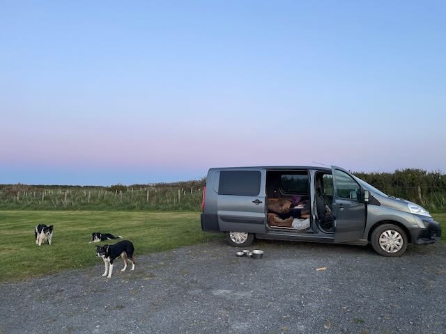 The dogs and I found a perfect camp site, with evening and morning walk along the Welsh coastal path, views over the harbour and sea. The owners, sheepherds of 500 sheep, admired the dogs, spoke easily.