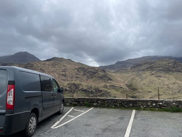 After many false starts trying to find a garage to diagnose my van engine light, I took a chance, and motored on. So it was around 4pm that I hit the western shore, after a long drive over a mountain range. Seeing the sea in the distance, I was drawn to it. We motored down into the village of New Quay. The farmer later said to me, many miss out this coast in favour of the more popular Cardigan, Pembroke. It was a working harbour, tide was out, dogs delighted for a run, they ran ahead and played around 2 people, one of which started to walk torward me. Oh dear I thought, not everyone likes dogs.