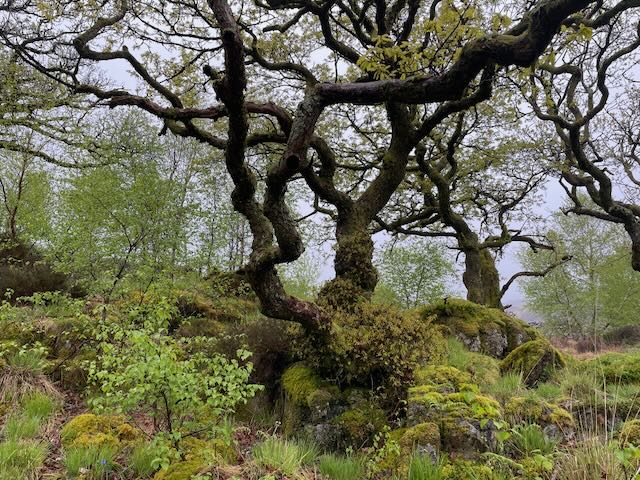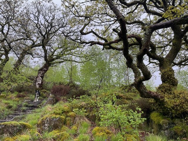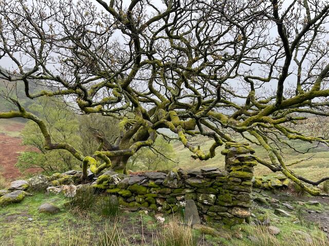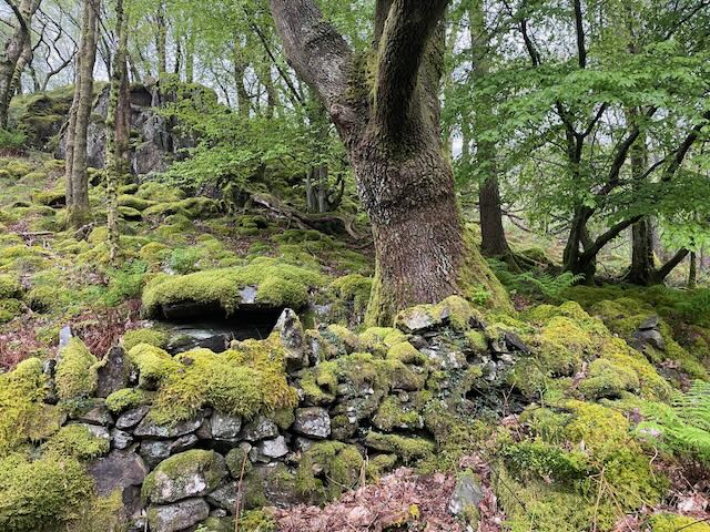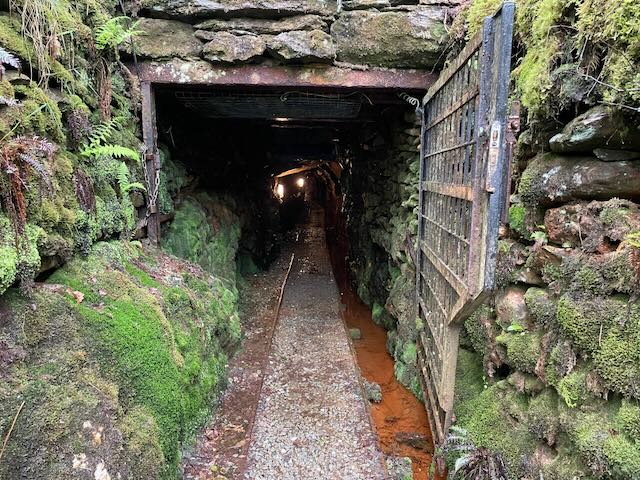 Where are you walking today, she asked. I do not know, I said, so she gave us our walk, to a waterfall. Marked all the way with black arrows, and relatively easy, she said. She was right. Walking passed the entrance to the copper mine, we would return to later, we began the ascent through remarkable moss covered oak trees, the way easily marked.