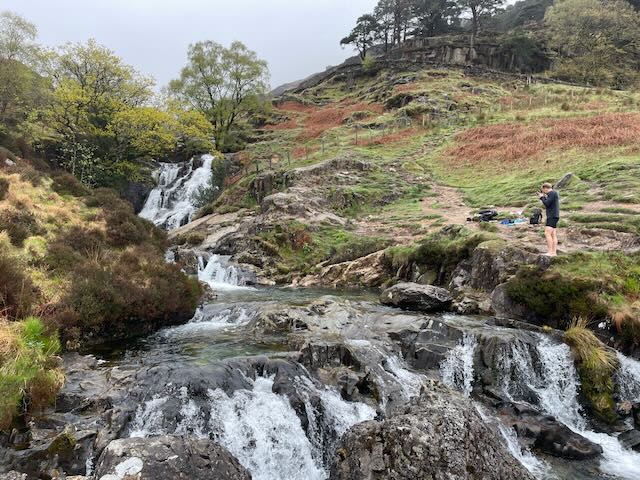 At the waterfall, two lads from Surrey who had come down from Snowdon (starting 4am) photographed themselves plunging in. Endorphins arising!