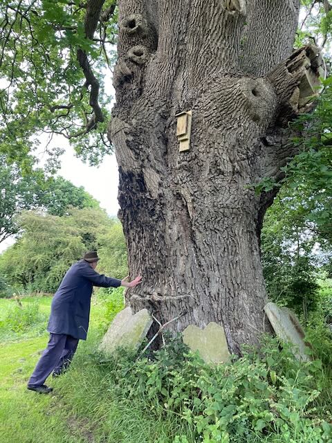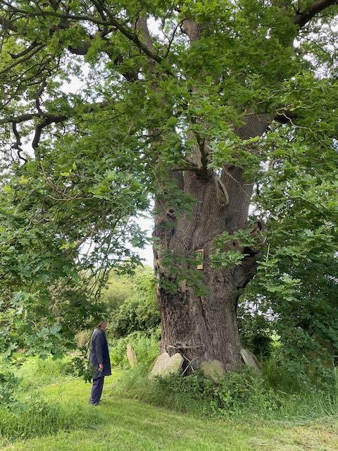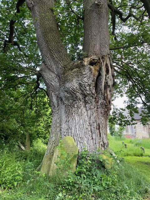 An unexpected gift of a huge oak to behold, as B and I meandered around his village of Thrandeston, after rain, early evening. It was huge with three branches as big as trunks soaring up. A massive wound on one side, so it must have lost a 4th branch at some time (Alice thinks during the 87 storm). In the The Hidden Life of Trees, Peter often draws analogy between human and tree life. With skin and bark: our skin stops our insides fall out, it is barrier that protects; it releases and absorbs moisture; prevents pathogens entering; sheds skin daily; changes over the years; and is sensitive to contact, pleasurable or painful. The difference is just in the the vocabulary. Bark. Bark fulfills the same functions as skin. A barrier, protects, releases, and sheds. The folds and wrinkles in a trees bark which deepen as the years progress, just as ours do.