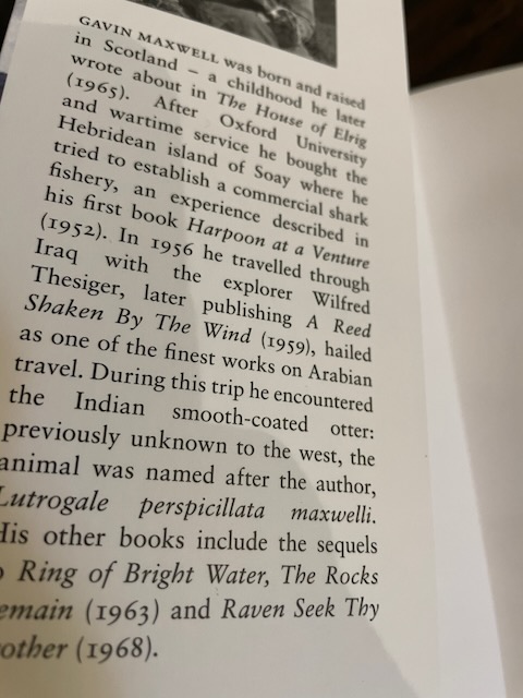 Not in photograph albums, nor in a library or book case nor on a computer, but stacked slices of wood with ink (fading) words describe all the events at White House Farm over the years. It was a Friday, very few of us there, so time to site by a fire meander a corner to find ‘Ring of Bright Water’ and read the brief bio of Gavin Maxwell (Iraq with Thesiger) and later hear of his friendship with Jason’s mother.