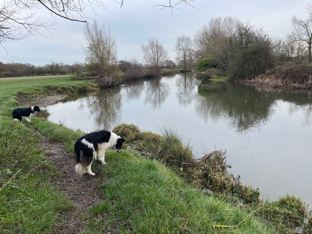 From Dedham Church (huge inside) I called the community, could I swing by I asked. Diana said yes. The dogs and I walked the pretty walk along the Stour river towards Flatford, they delighted to be out for a stretch.