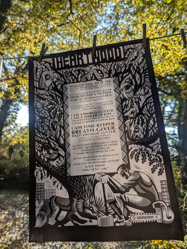 Ten years ago, June 14th 2014, at Clark and Simpson auction, I bought the wood. June this year the story was encapsulated in 10 stations of the wood, as a progressive theatrical performance staring children from Kinda Forest School, ably directed by Pippa. I loved the process, the planning from January, gathering all people who built the scafFold of this story. Bo (who was me) and Leon who played most of the other parts, were hilarious and brilliant. It was the highlight of my year. A movie is planned.