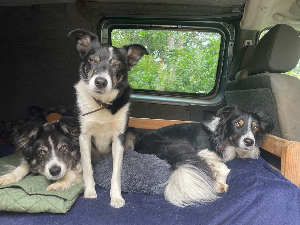 It was cousin Tori’s idea to get away in spring, to South Wales. Rosillie, a empty beach loved by our 4 dogs, as well as Charlie, Tori and I. Star fish and huge skies. I failed to cross the Worm – Kali too blind, I not fit enough to save him. Loved the Whiteford Lighthouse, and spending time with Charlie and Tori. In between a few days camping near Snowdon, gentle walking around the foothills, among moss. New Quay unexpectedly meeting two girls both involved in death, sharing fish and chips. (They loved the dogs). Pwllheli with Kevin and Gill. We were an eccentric group, 3 people, Kevin with his large frame, unsteady gait (CP), Gill elegantly dressed, the only one who knew how to pronounce Pwllheli, aged 90 game to fit into any adventure with conversations beginning ‘When I was in Uganda’ and I with 3 boarder collies, mostly on a lead. We travelled well together. We could do it again.