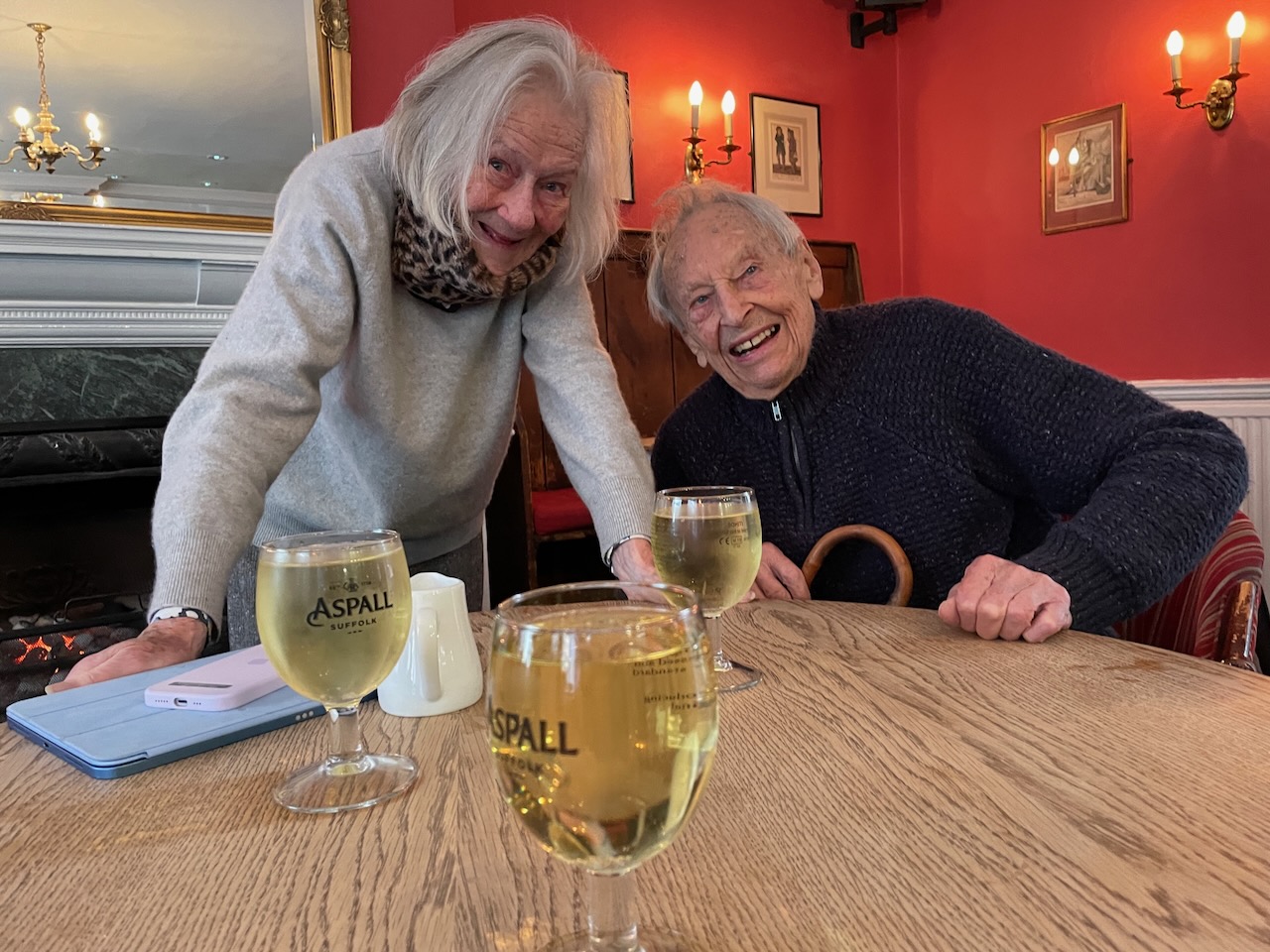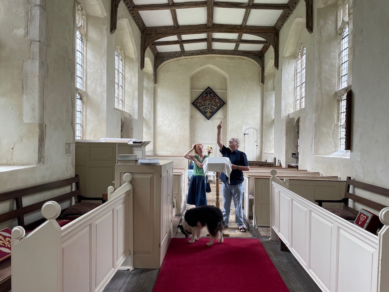 Friendships therefore are preciously nourished. Rupert and I did a record breaking tour of Suffolk churches: Dennington (finding the upside down skier – Sciapod), Fritton, Baddingham, Herringfleet, Sommerleyton, Haddiscoe. Yuka spent much of summer here. Les turned 80, celebrated with Emma in Bungay. Christianne and Sonia visited from Germany and came to Strumpshaw. Brian had his brush with cancer but recovered, and we had glorious days away throughout the year, starting with Yarmouth ending in Staverton for my 67th birthday, realising our ignorance of epicormic growths. A luxurious lunch at the Sun in Dedham with Tinks and Clive, after which I managed to fit in a flying visit to the Community in Colchester, still inspiring, mostly now in their 90’s.