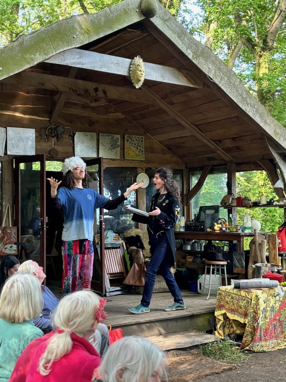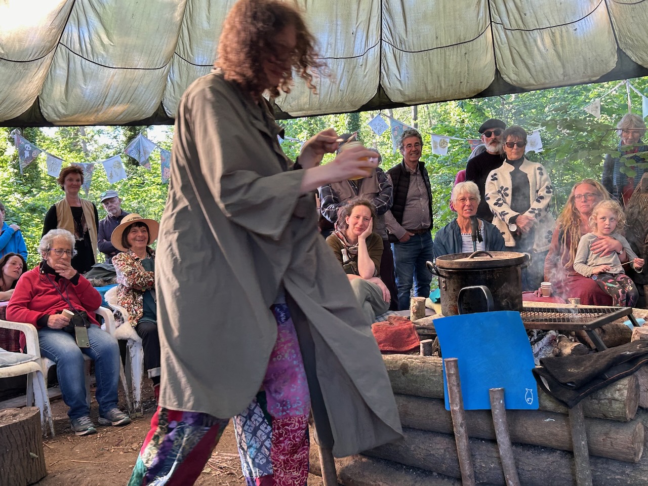 Ten years ago, June 14th 2014, at Clark and Simpson auction, I bought the wood. June this year the story was encapsulated in 10 stations of the wood, as a progressive theatrical performance staring children from Kinda Forest School, ably directed by Pippa. I loved the process, the planning from January, gathering all people who built the scafFold of this story. Bo (who was me) and Leon who played most of the other parts, were hilarious and brilliant. It was the highlight of my year. A movie is planned.