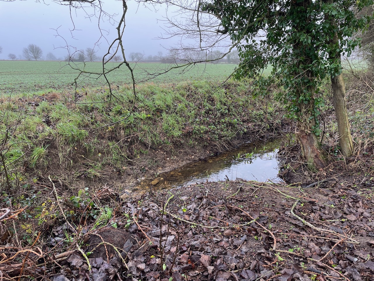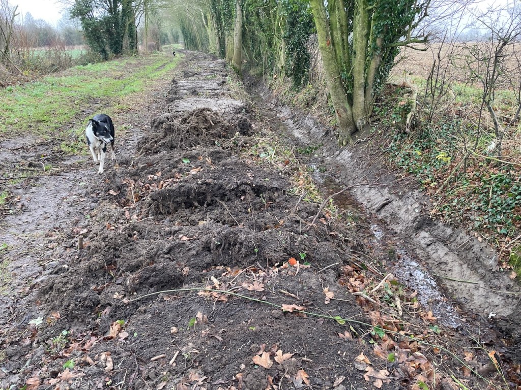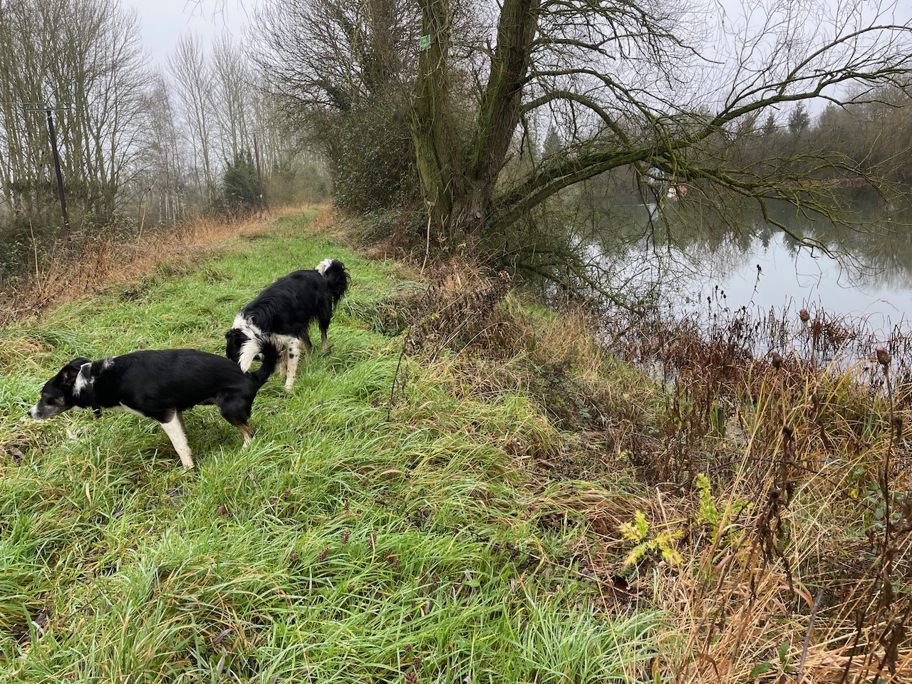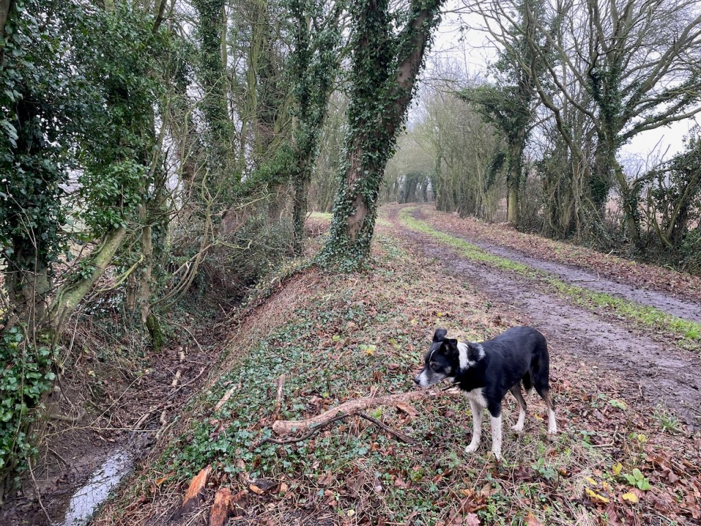 The dogs and I found a good way back joining what is called the Dark Lane, a natural wide old highway, old coppice beside ditches either side. Much evidence of some very recent woodland and ditch working. Following rivers gives simple pleasures, like seeing where one stream comes into another.