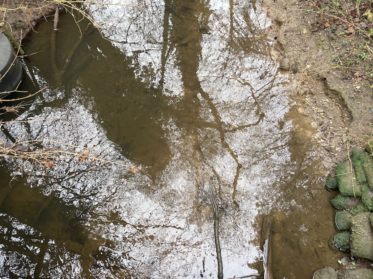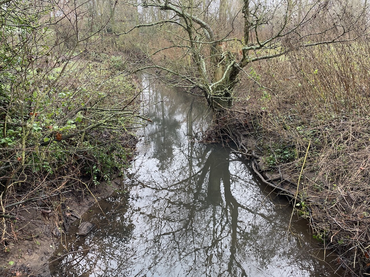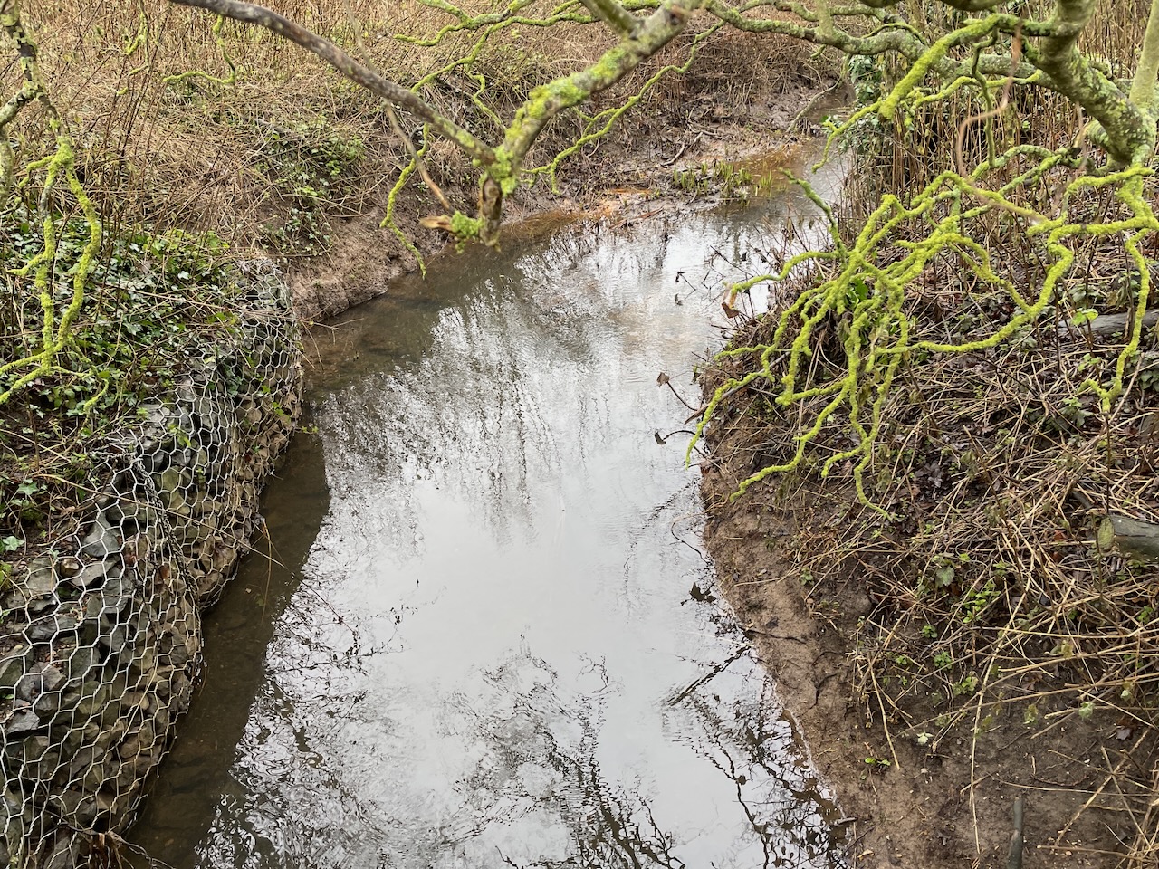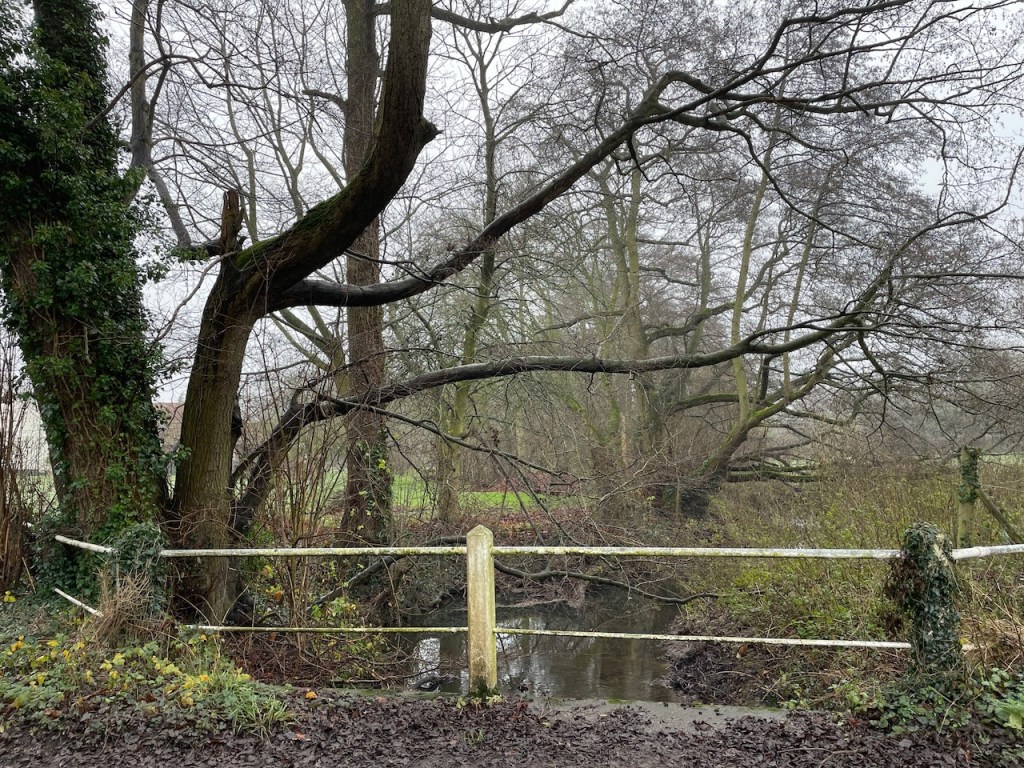 The river is lined with Alder along the edges, and a magnficient Alder in the road side hedge had been laid years ago, now sprouted 8-9 stems from the laid branch. Some hedges rigorously clipped year on. At intermittent moments, a lane or path leads down to the river, so we get a look of it, gradually gaining in body and movement as we reached Rendham.