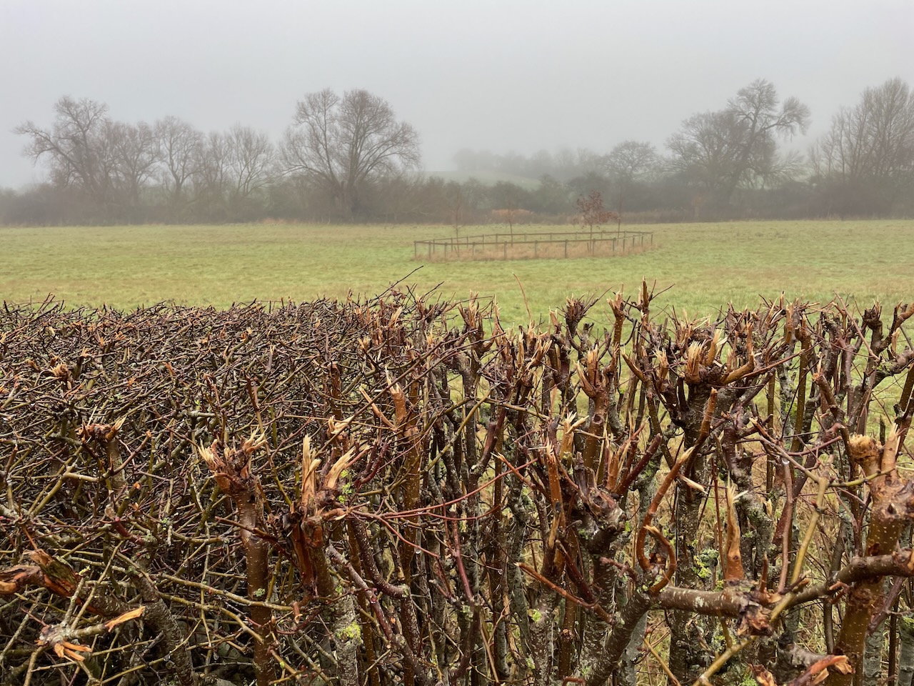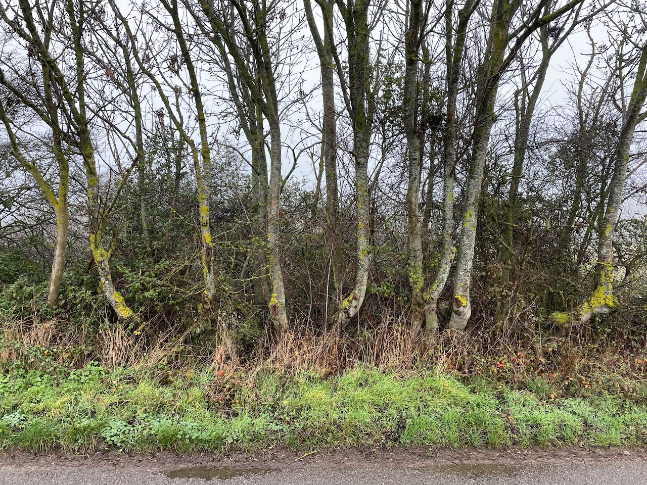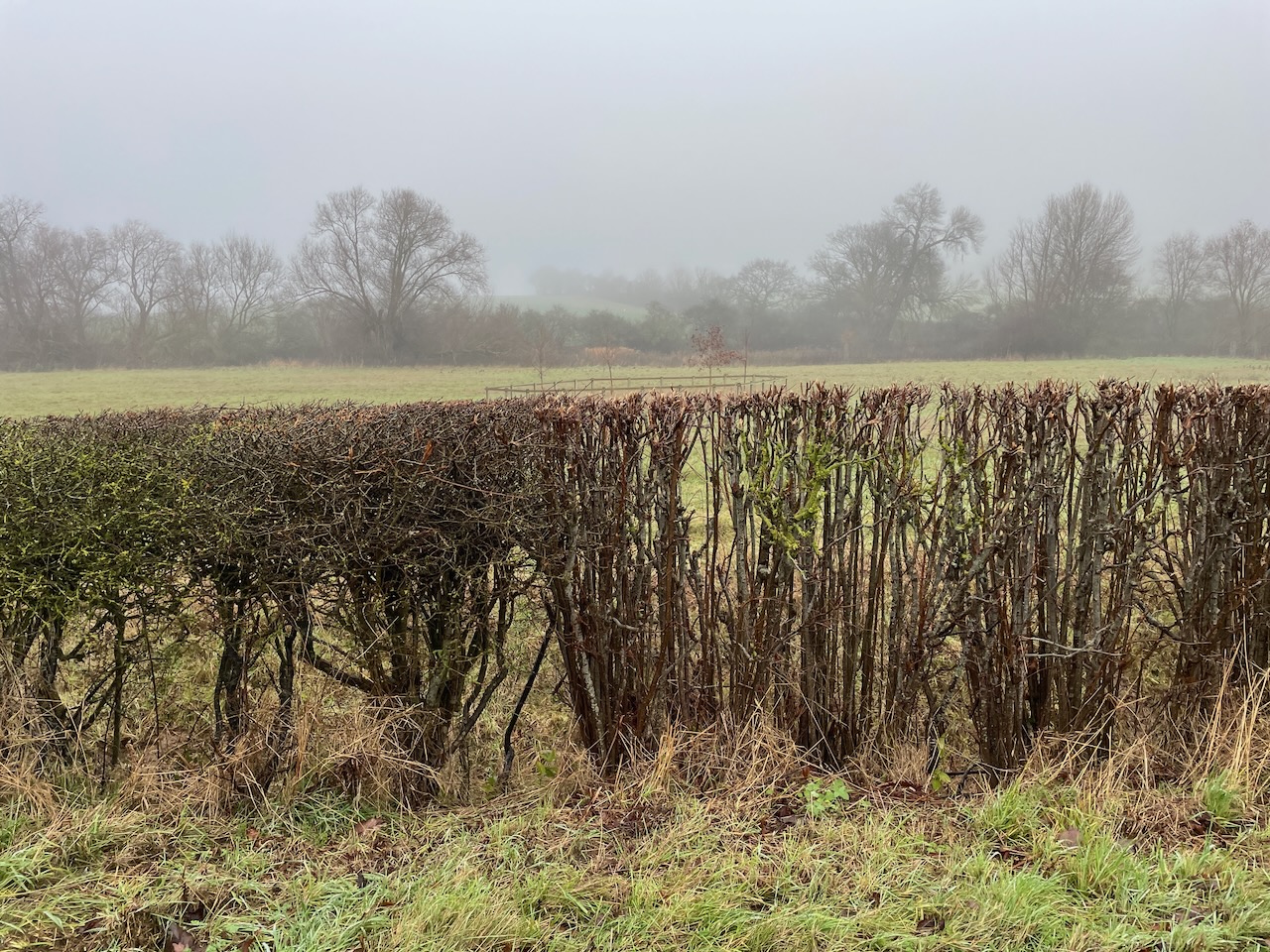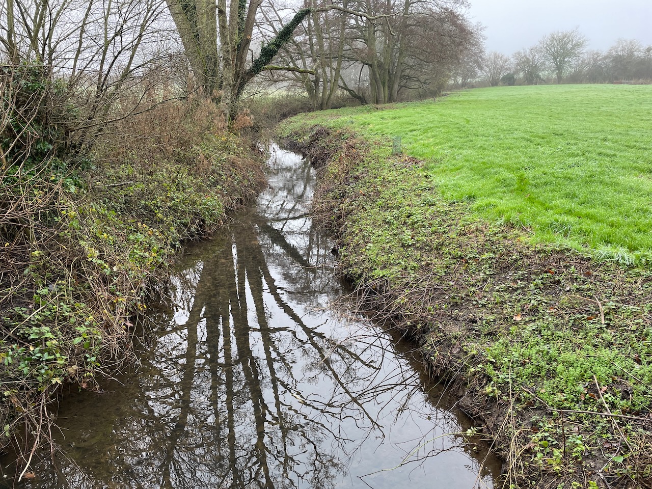 The river is lined with Alder along the edges, and a magnficient Alder in the road side hedge had been laid years ago, now sprouted 8-9 stems from the laid branch. Some hedges rigorously clipped year on. At intermittent moments, a lane or path leads down to the river, so we get a look of it, gradually gaining in body and movement as we reached Rendham.