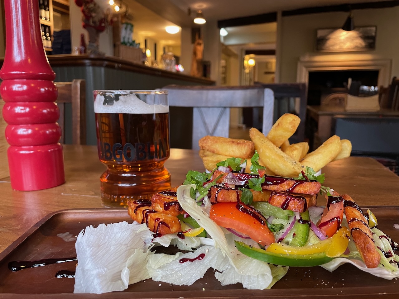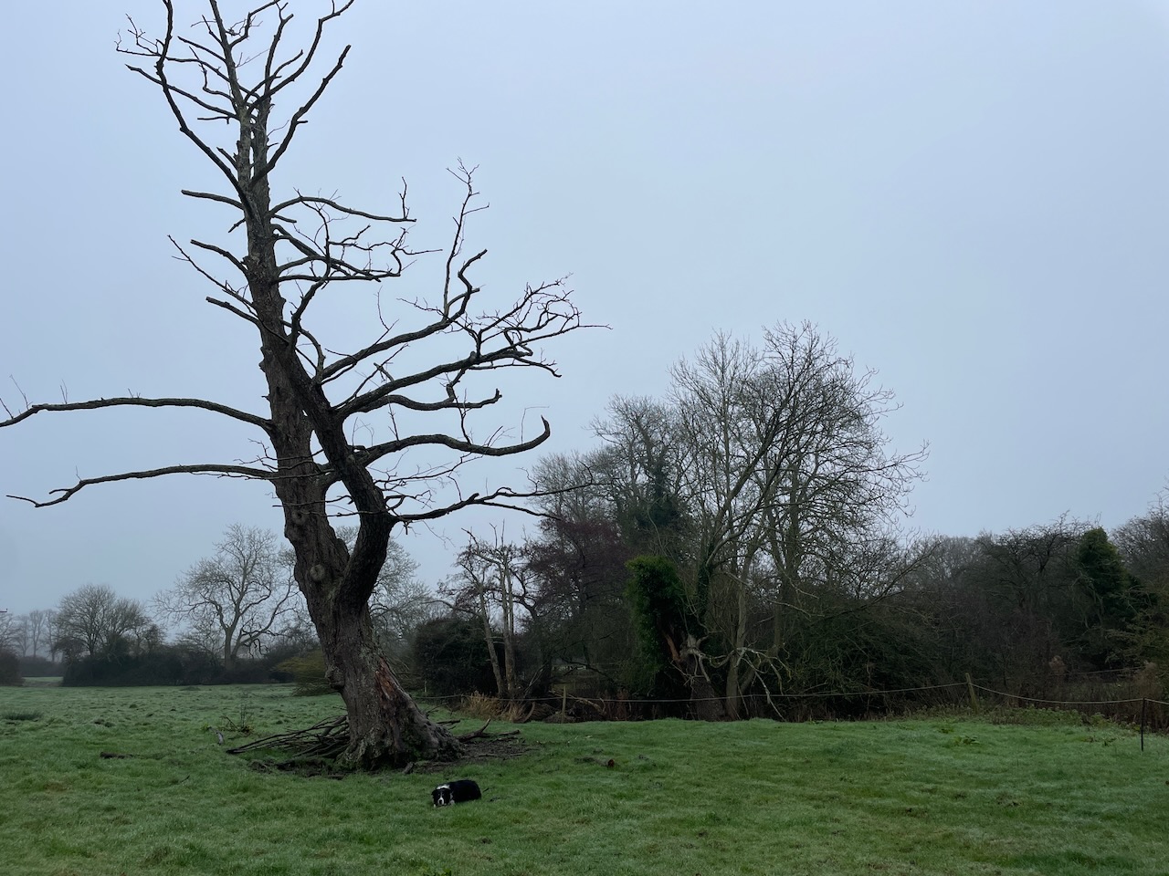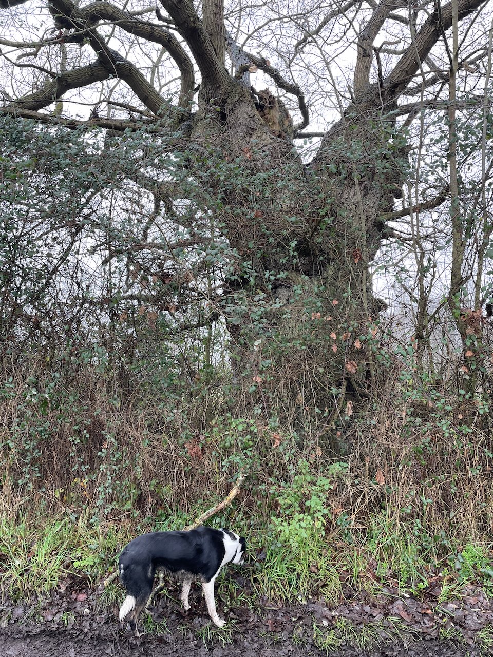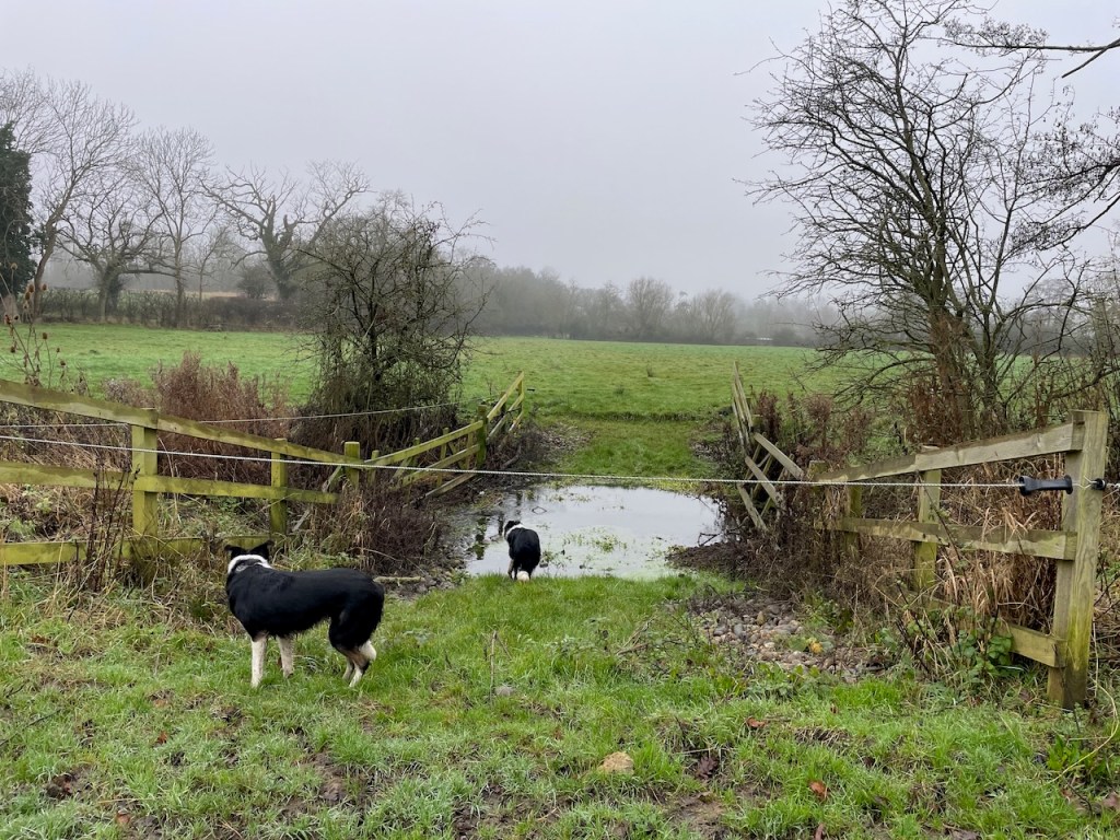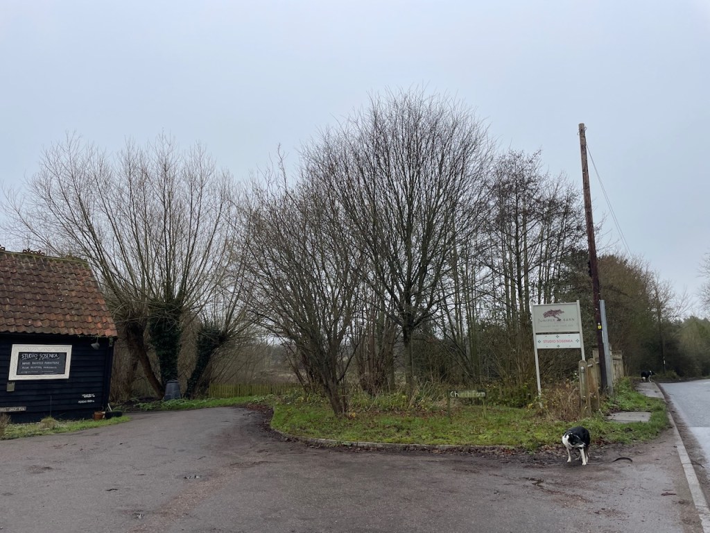 We kept to the west side of the Alde, through the hamlet of Bruisyard. Thought of Kevin and his involvement in setting up the Bruisyard vineyards here. Where did he live, I wondered. Always feel a bit nervous going into a field saying ‘Dogs on leads, Bull in Field’. There was no bull and we found the Alde as a natural ford. Some magnificent oaks along the way. Walked into Rendham, a village I’d never heard of. I had a prejudice to take a pint the Sweffling White Horse, but decided to try the Rendham White Horse, where the dogs were gifted biscuits, and I downed pint and and munched halomi and chips. Another of those random good decisions, as the Sweffling WH was closed!