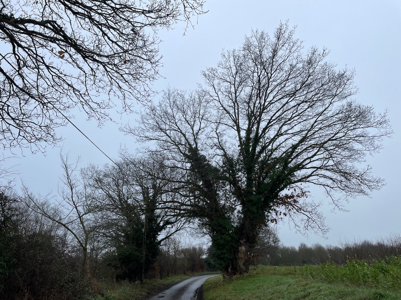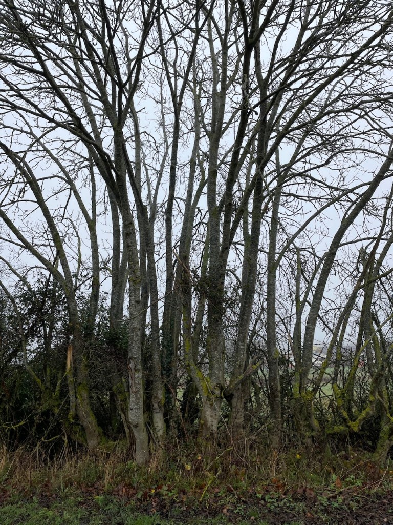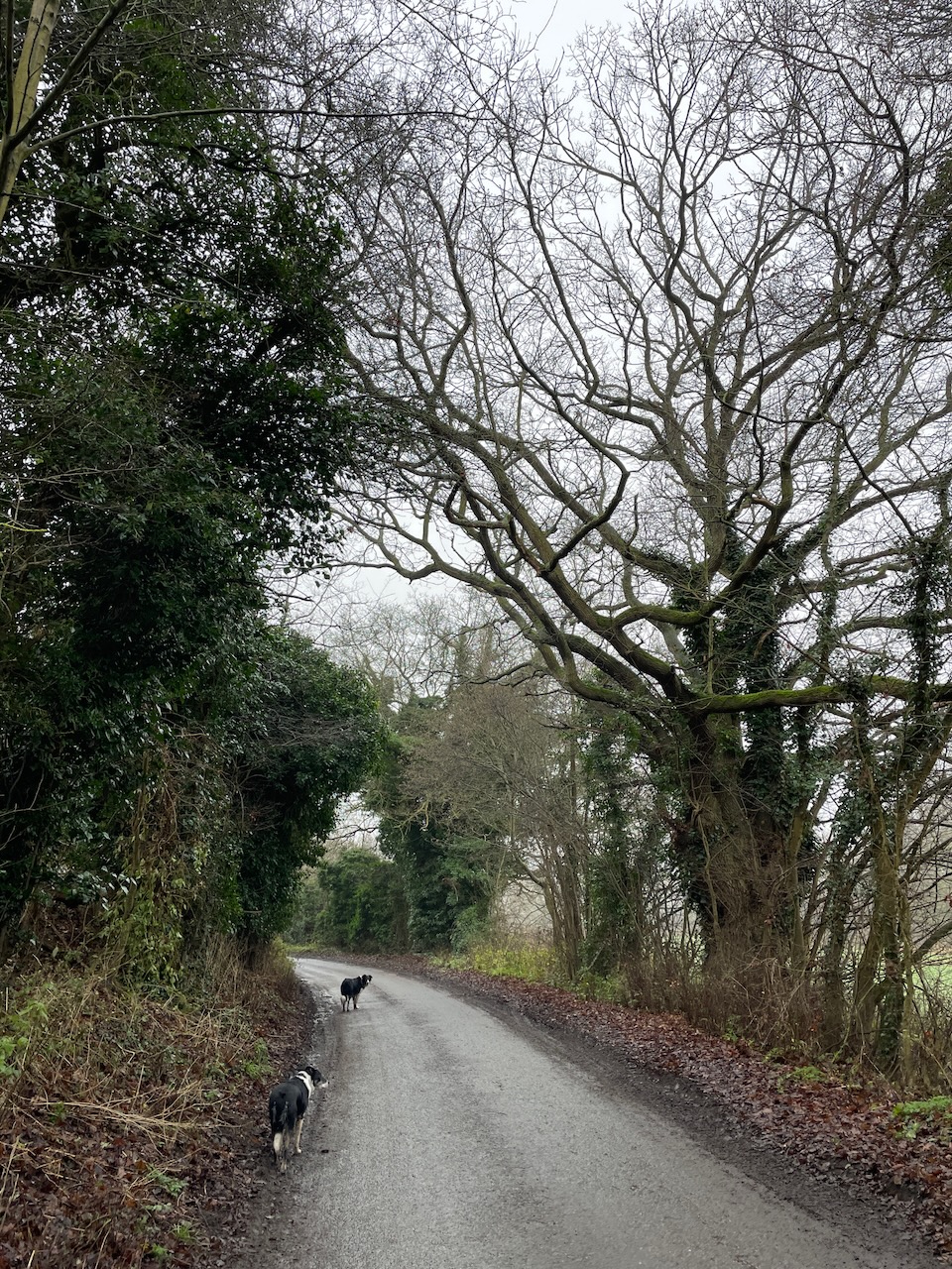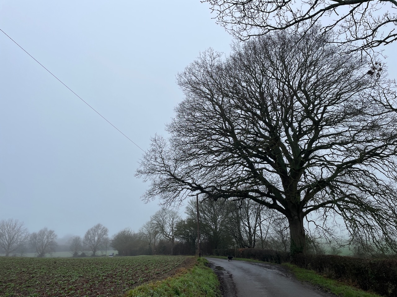 Way back on the west side the road was easy and the mind meandered. What do I think of on these walks? Mostly it’s probably geography, checking direction. Then it’s dogs, keeping them safe. Image recognition next, sometimes a name following like great pollard oak, nice coppice, traditional ploughed field, soft milky light. Sometimes an image or moment triggers a memory, and the mind goes off to that memory. Sometimes a fear, have I left the handbreak on, is Kali ok in the van. Sometimes failure, will I draw again, paint, is there time enough, why haven’t I started this long ago, planted trees, had children, found a mate, built a home. Sometimes reading the land, imagining people in the past walking this way, or in the future.