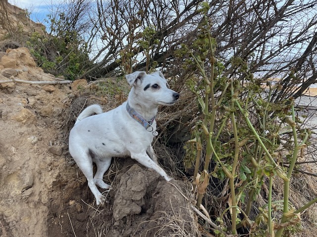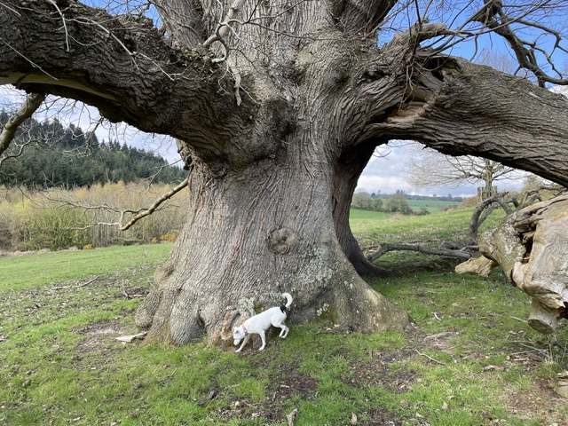 It has been such a pleasure to be with another who loves and knows about trees, who reminds me to tie an undone shoe lace, who cleans the window of my van and encourages me to have a go at the rest of it, who checks my water and oil in the engine which I only just remembered how to open, who understands the need to pay Sophie my clearer who I forgot to pay, who reminds me of the sacred, and tempts me to Glastonbury and who has the most adorable bright terrier dog, Mimi. She found evidence of rates in so many places.