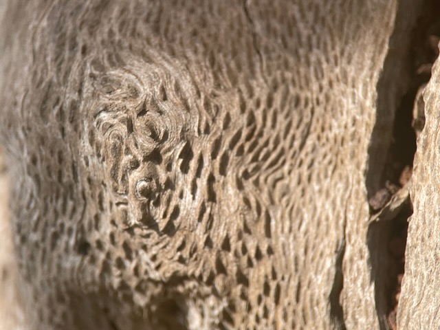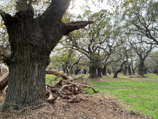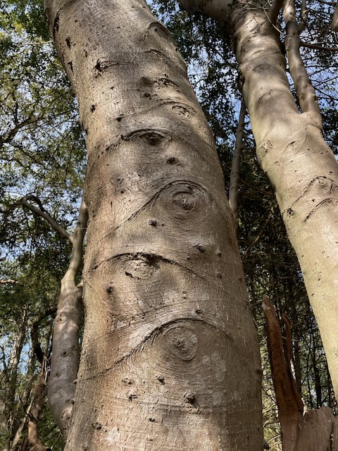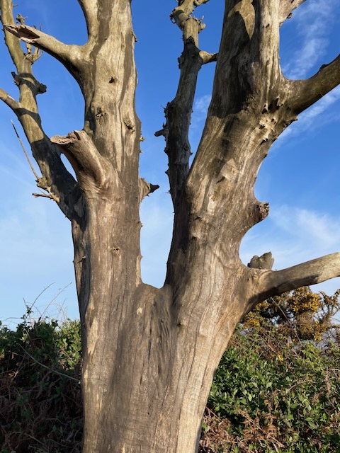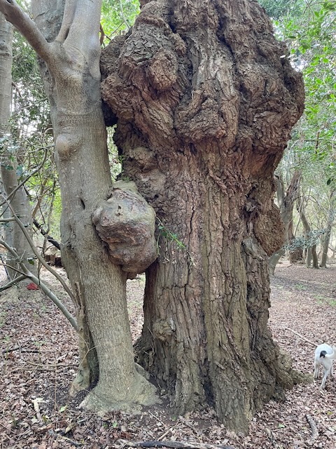 I want to return with a sketch book. We had a picnic among the Thicks, more protected from the north east wind, and sitting under a collection of them, I noticed their eyes in the holly stem. There must be some useful symbiosis between the holly and the oak, so close they lived together, one fusing into the other I noticed.