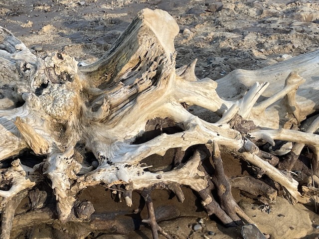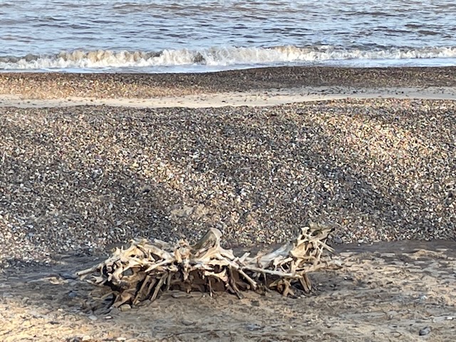 In the warm light of the following early evening, the day work done, we drove to South Cove, for Richard to feel the east coast eroding 1-2 meters a year, and see the skeletons of the wind and see washed trees which had fallen into the beach.