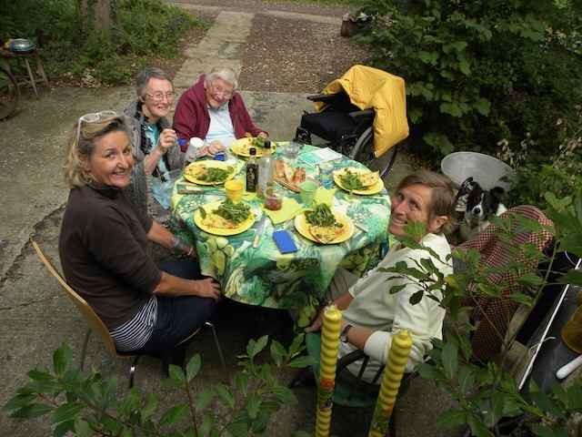 News came unexpectedly that Tre Lenahan died. Here she is 2017 accompanying Magdalene on a Suffolk jaunt, having lunch in the wood, with Julia A and Gabrielle. She was the natural leader of the community as they transited from New Hall Tudor mansion to rough housing estate in Colchester.